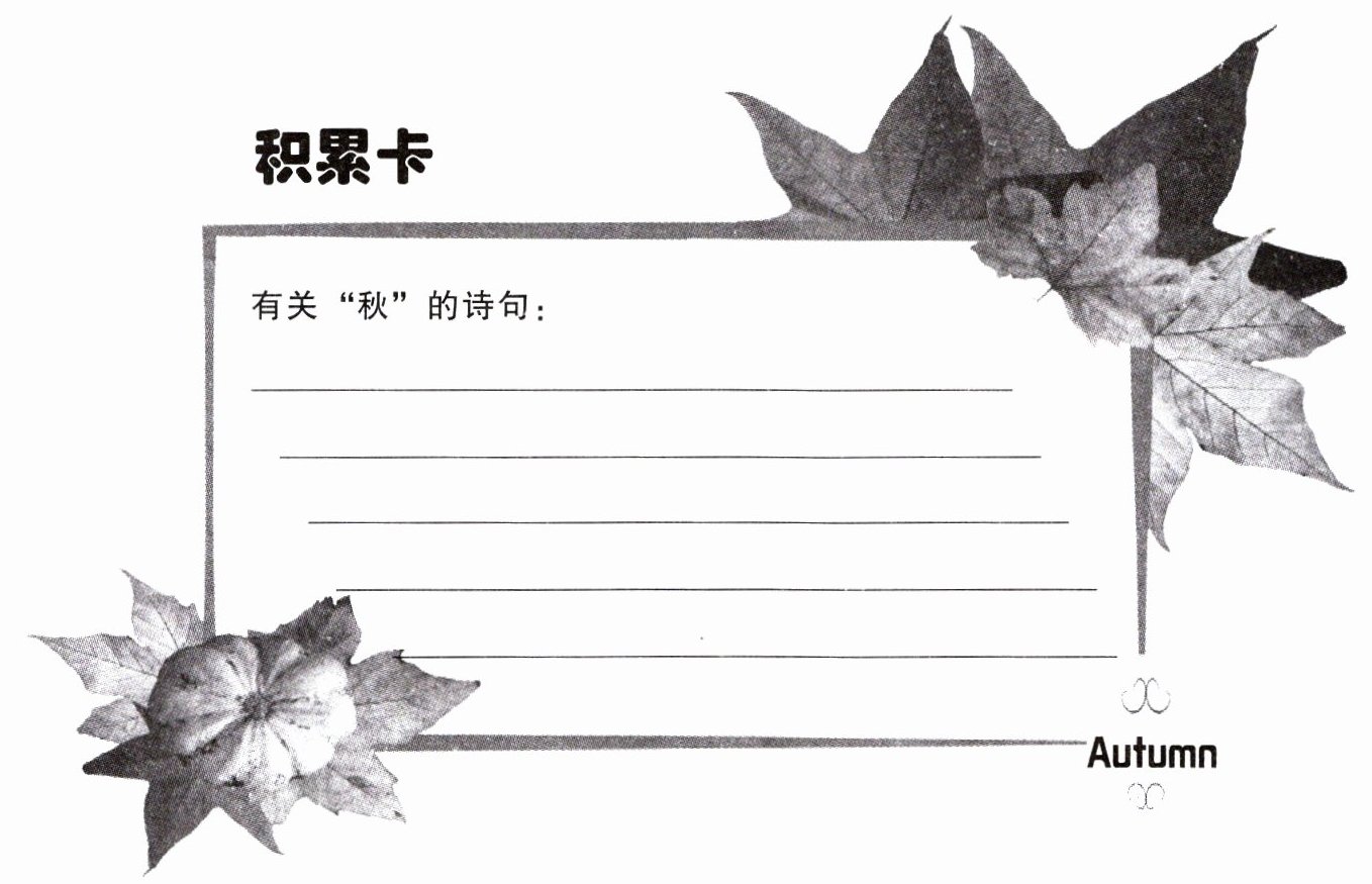 3. 任务三:主持人设计的活动中有飞花令环节,关键词是“秋”,请你提前做好有关“秋”的诗词积累,完成卡片填写(写出五句)。(5 分)