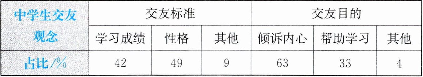 示例:中学生交友的目的主要是倾诉内心,少数人是为了帮助学习等