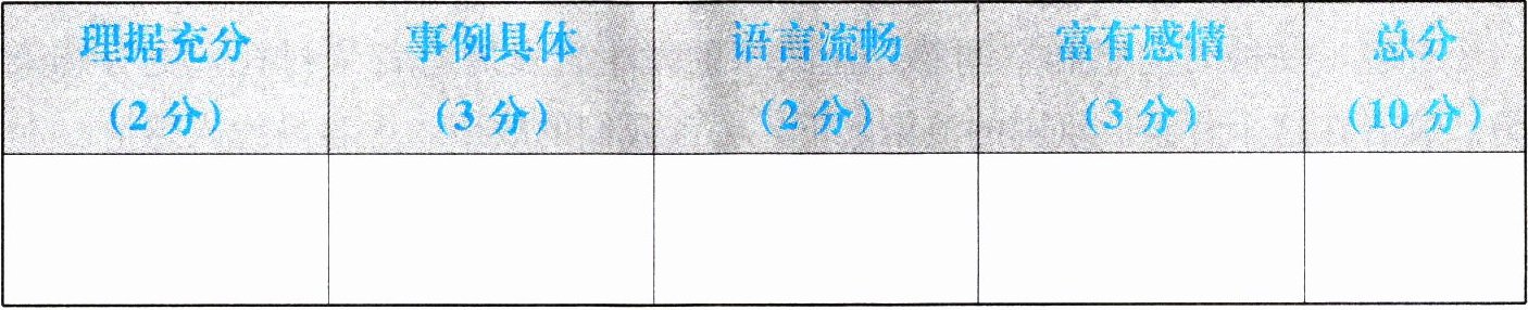| 理据充分(2分) | 事例具体(3分) | 语言流畅(2分) | 富有感情(3分) | 总分(10分) |