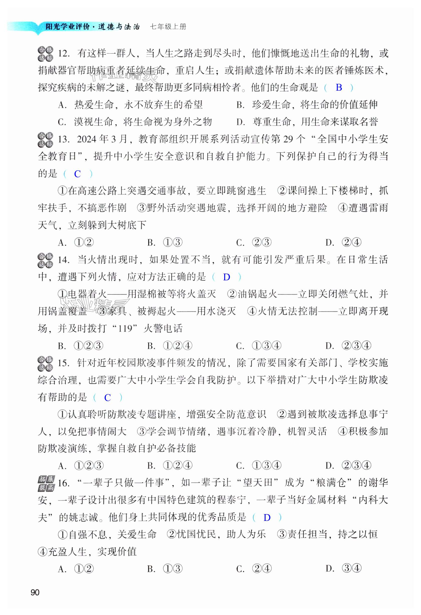 注:目前有些书本章节名称可能整理的还不是很完善,但都是按照顺序排列的,请同学们按照顺序仔细查找。练习册 2024年阳光学业评价七年级道德与法治上册人教版 答案主要是用来给同学们做完题方便对答案用的,请勿直接抄袭。
