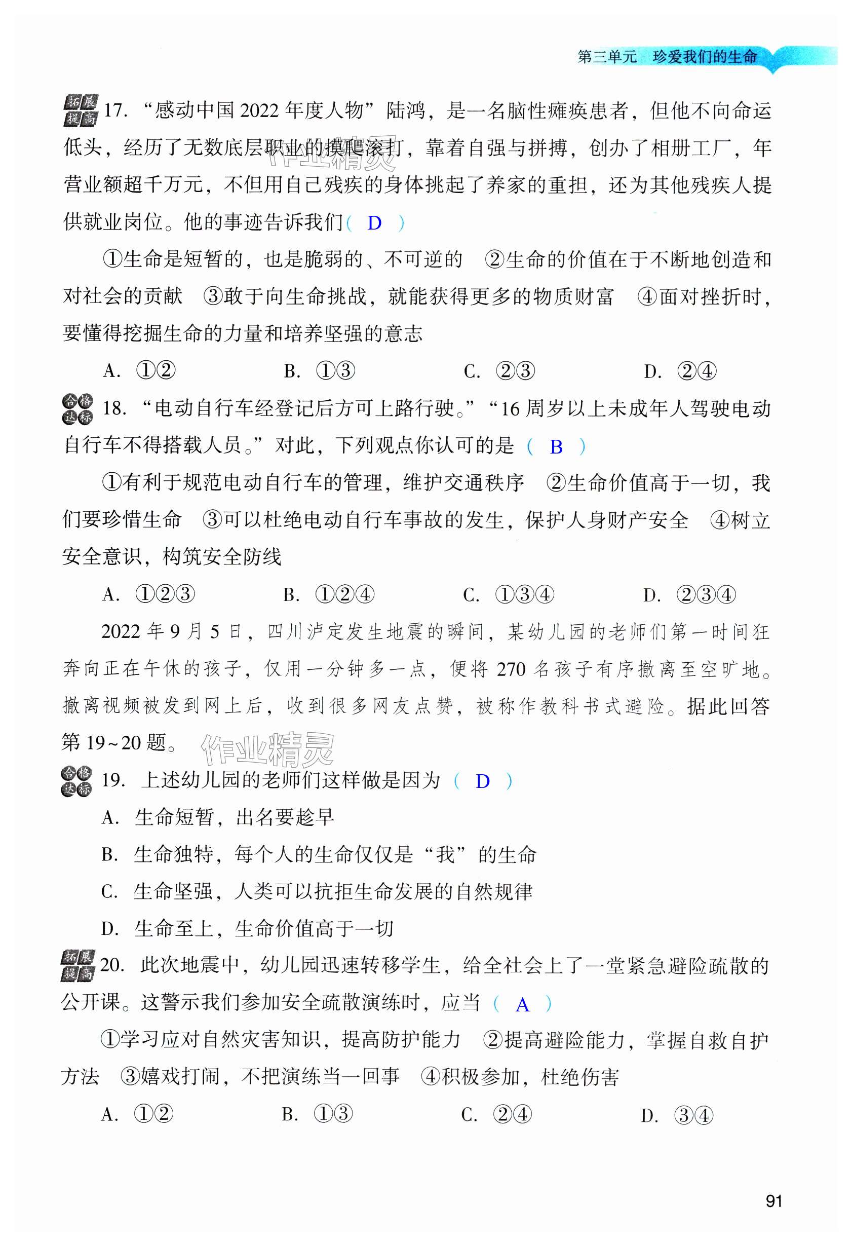 注:目前有些书本章节名称可能整理的还不是很完善,但都是按照顺序排列的,请同学们按照顺序仔细查找。练习册 2024年阳光学业评价七年级道德与法治上册人教版 答案主要是用来给同学们做完题方便对答案用的,请勿直接抄袭。