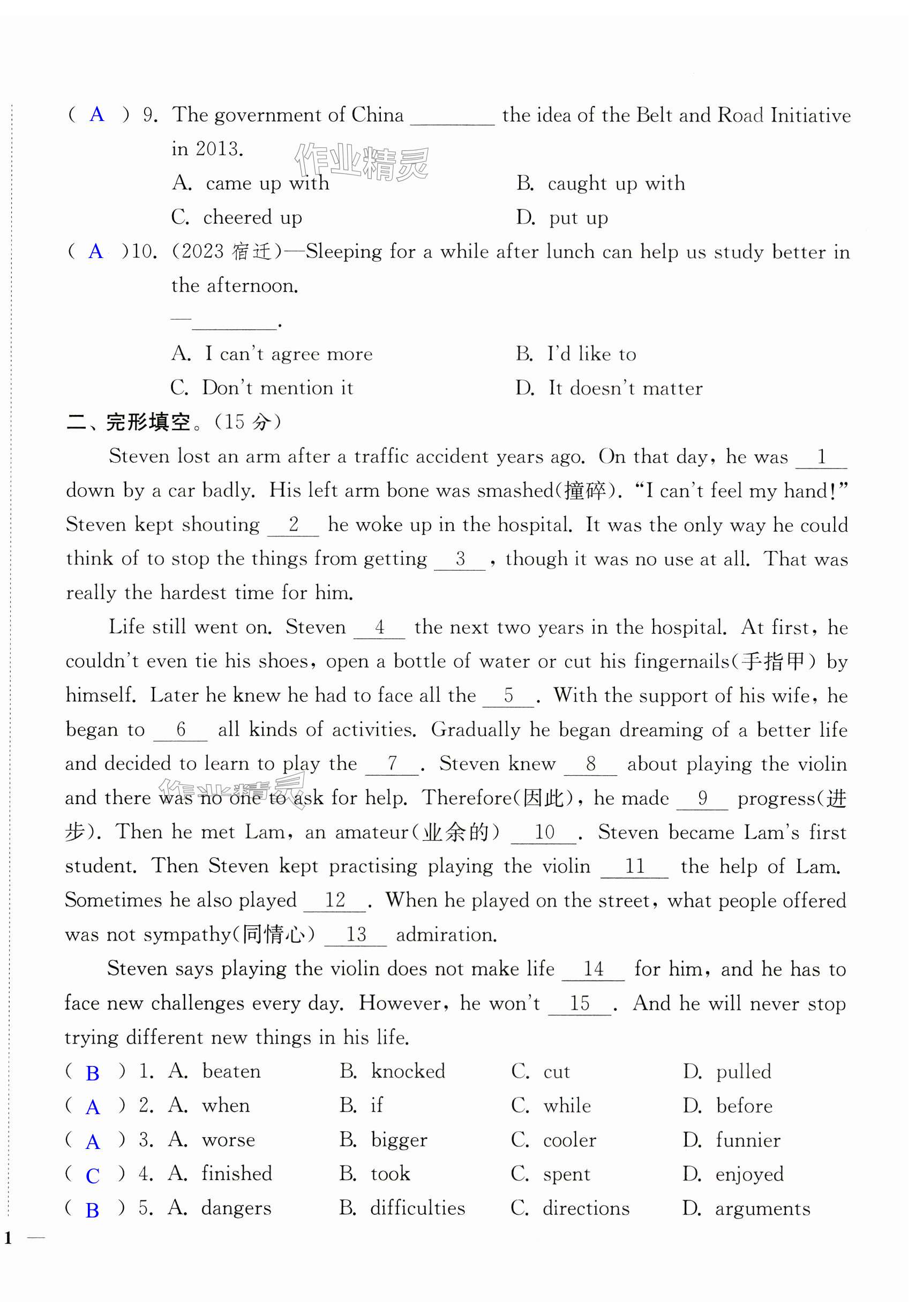 注:目前有些书本章节名称可能整理的还不是很完善,但都是按照顺序排列的,请同学们按照顺序仔细查找。练习册 2024年一本好卷九年级英语全一册译林版 答案主要是用来给同学们做完题方便对答案用的,请勿直接抄袭。