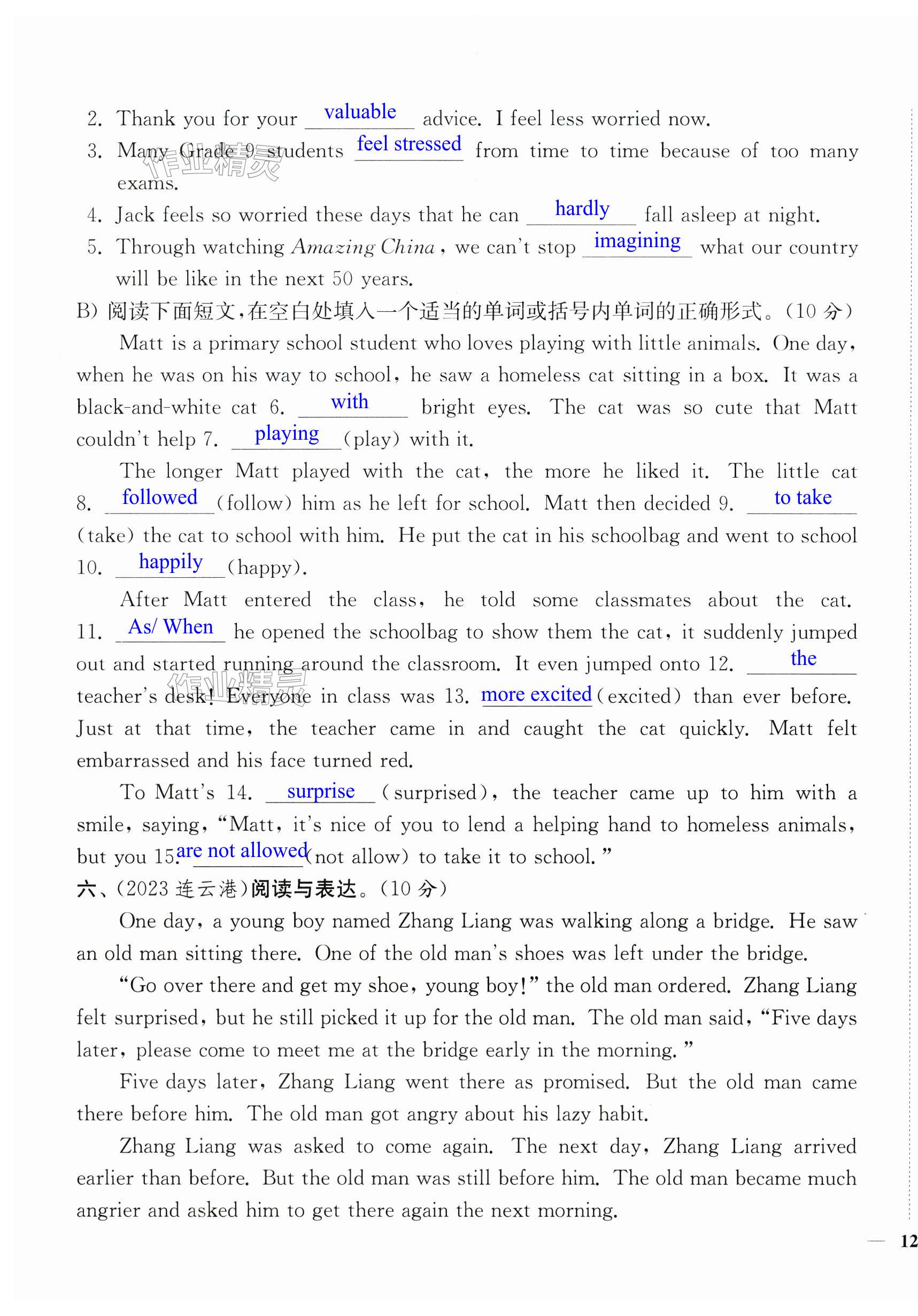 注:目前有些书本章节名称可能整理的还不是很完善,但都是按照顺序排列的,请同学们按照顺序仔细查找。练习册 2024年一本好卷九年级英语全一册译林版 答案主要是用来给同学们做完题方便对答案用的,请勿直接抄袭。