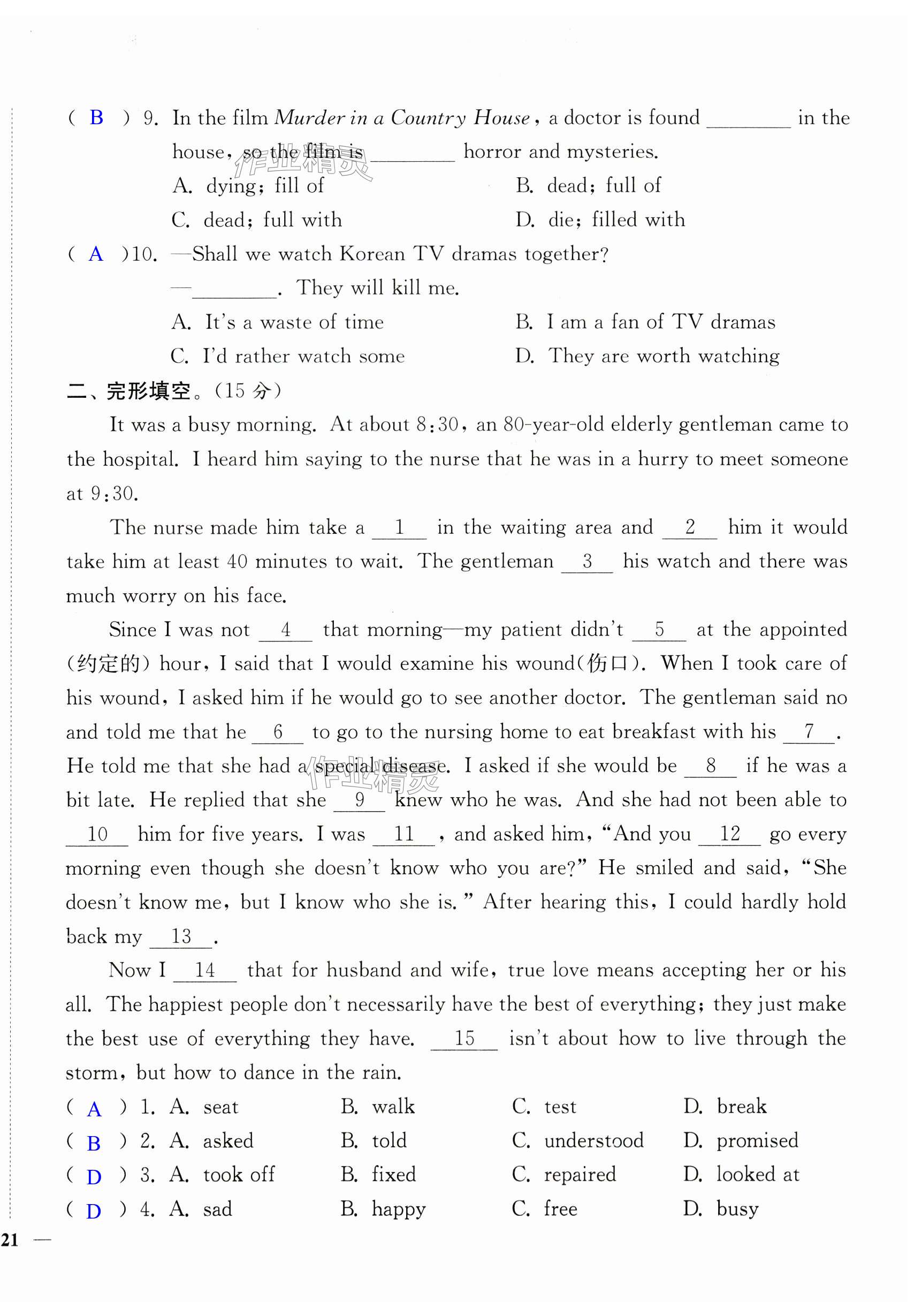 注:目前有些书本章节名称可能整理的还不是很完善,但都是按照顺序排列的,请同学们按照顺序仔细查找。练习册 2024年一本好卷九年级英语全一册译林版 答案主要是用来给同学们做完题方便对答案用的,请勿直接抄袭。