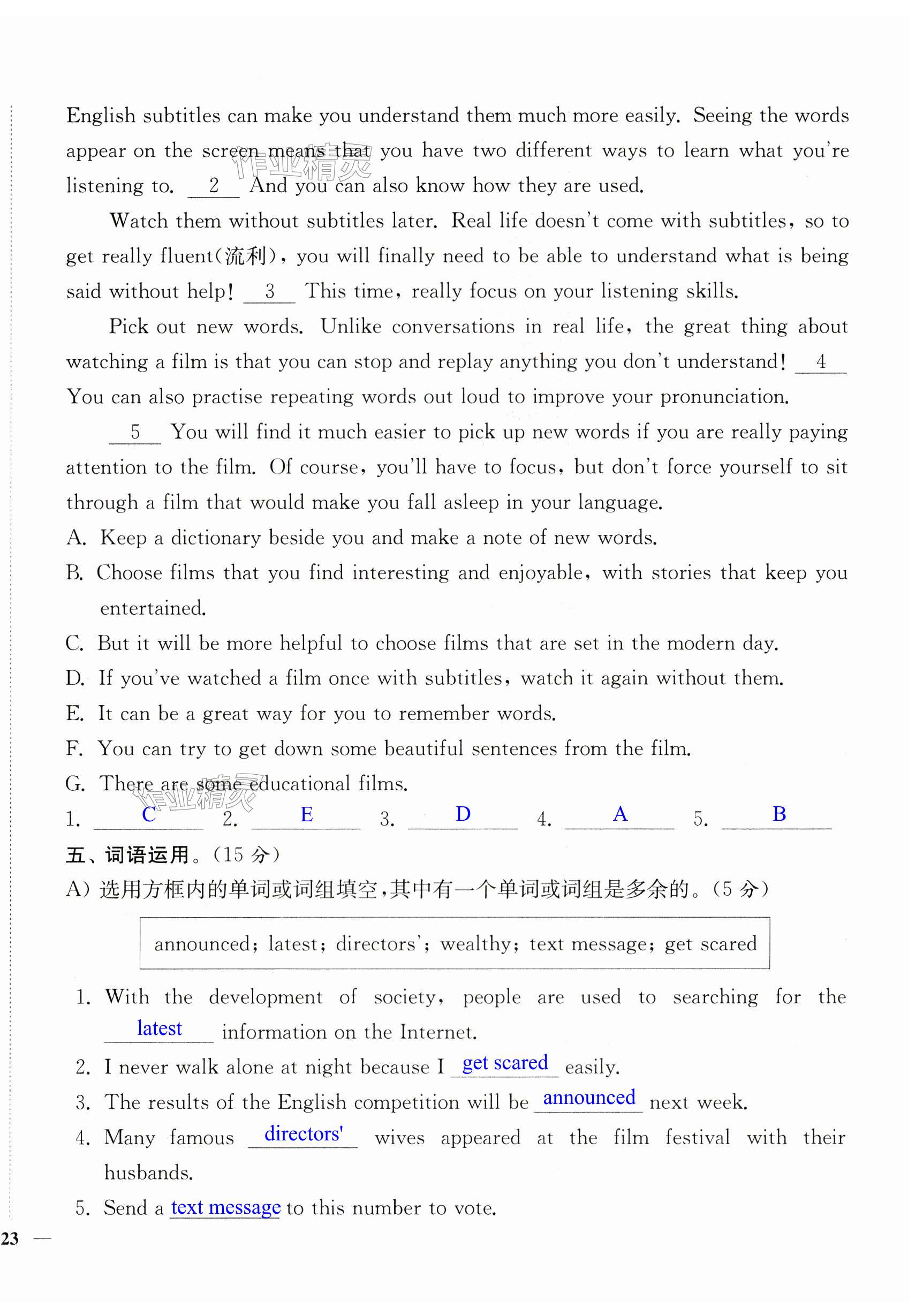注:目前有些书本章节名称可能整理的还不是很完善,但都是按照顺序排列的,请同学们按照顺序仔细查找。练习册 2024年一本好卷九年级英语全一册译林版 答案主要是用来给同学们做完题方便对答案用的,请勿直接抄袭。