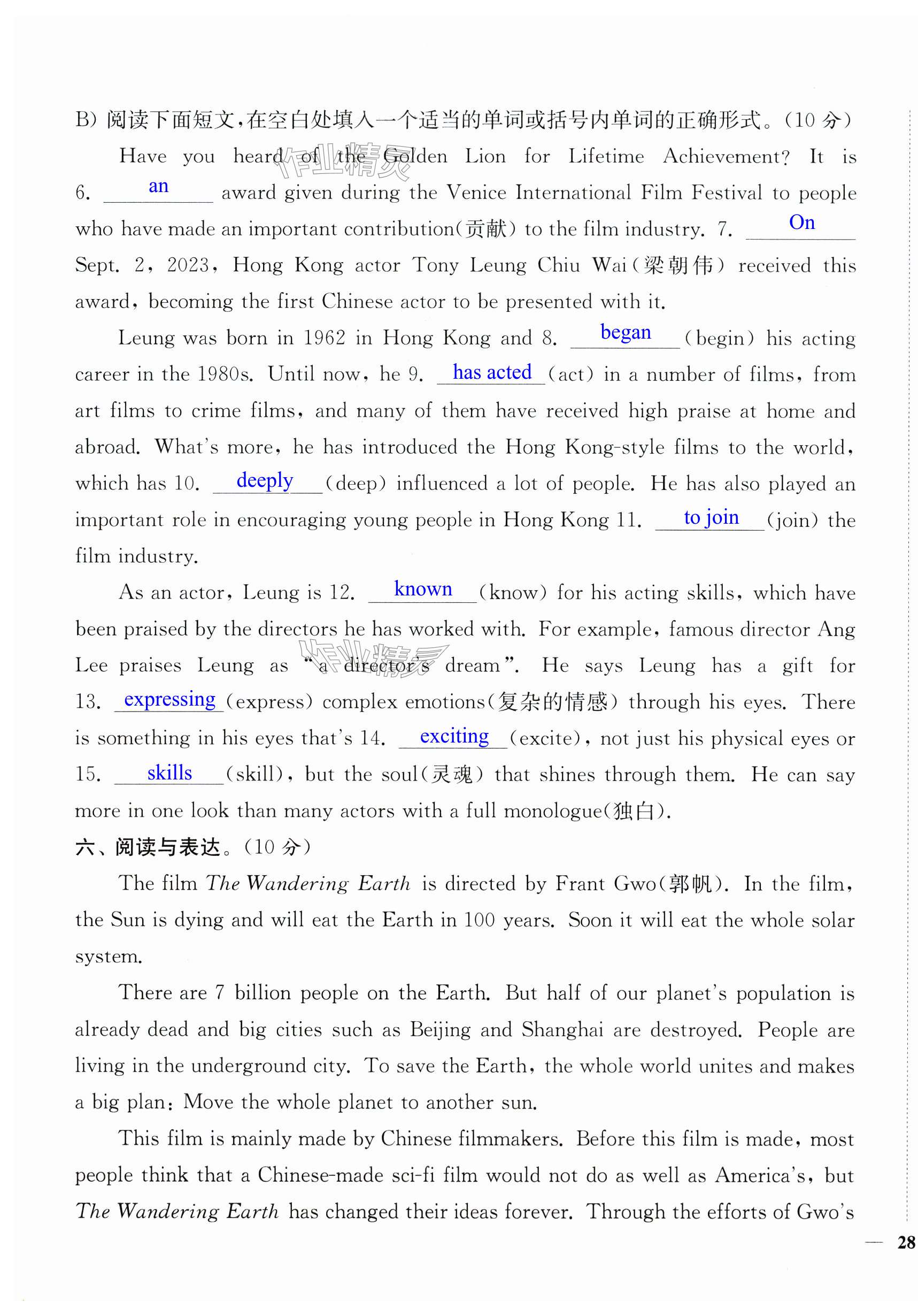 注:目前有些书本章节名称可能整理的还不是很完善,但都是按照顺序排列的,请同学们按照顺序仔细查找。练习册 2024年一本好卷九年级英语全一册译林版 答案主要是用来给同学们做完题方便对答案用的,请勿直接抄袭。