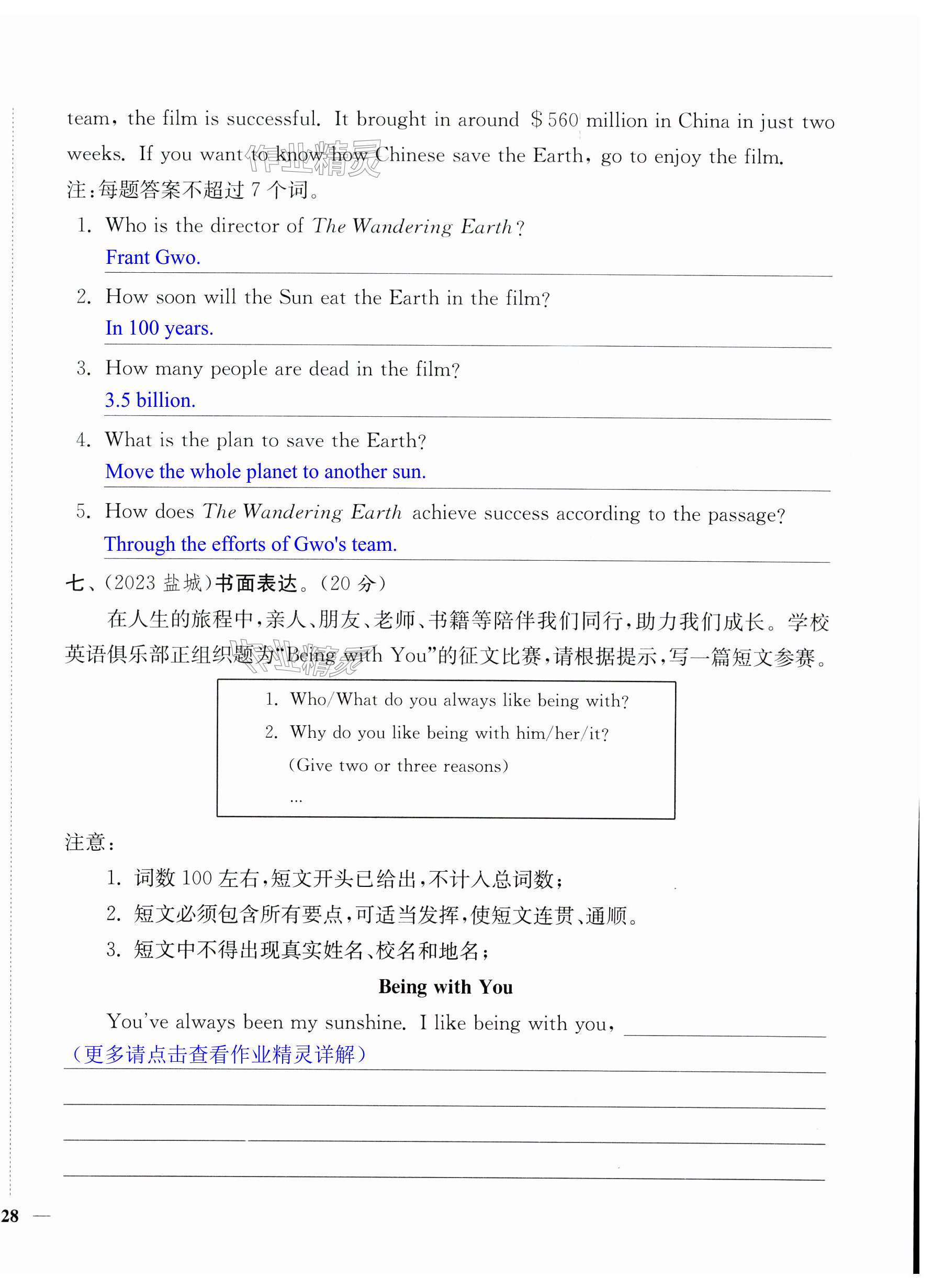 注:目前有些书本章节名称可能整理的还不是很完善,但都是按照顺序排列的,请同学们按照顺序仔细查找。练习册 2024年一本好卷九年级英语全一册译林版 答案主要是用来给同学们做完题方便对答案用的,请勿直接抄袭。
