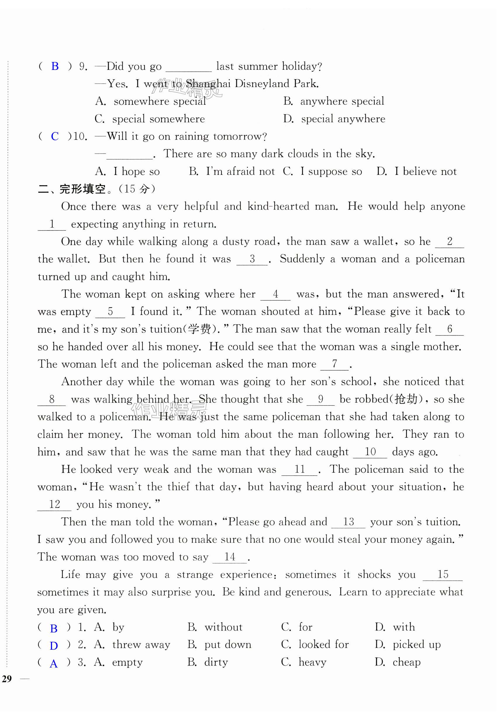 注:目前有些书本章节名称可能整理的还不是很完善,但都是按照顺序排列的,请同学们按照顺序仔细查找。练习册 2024年一本好卷九年级英语全一册译林版 答案主要是用来给同学们做完题方便对答案用的,请勿直接抄袭。