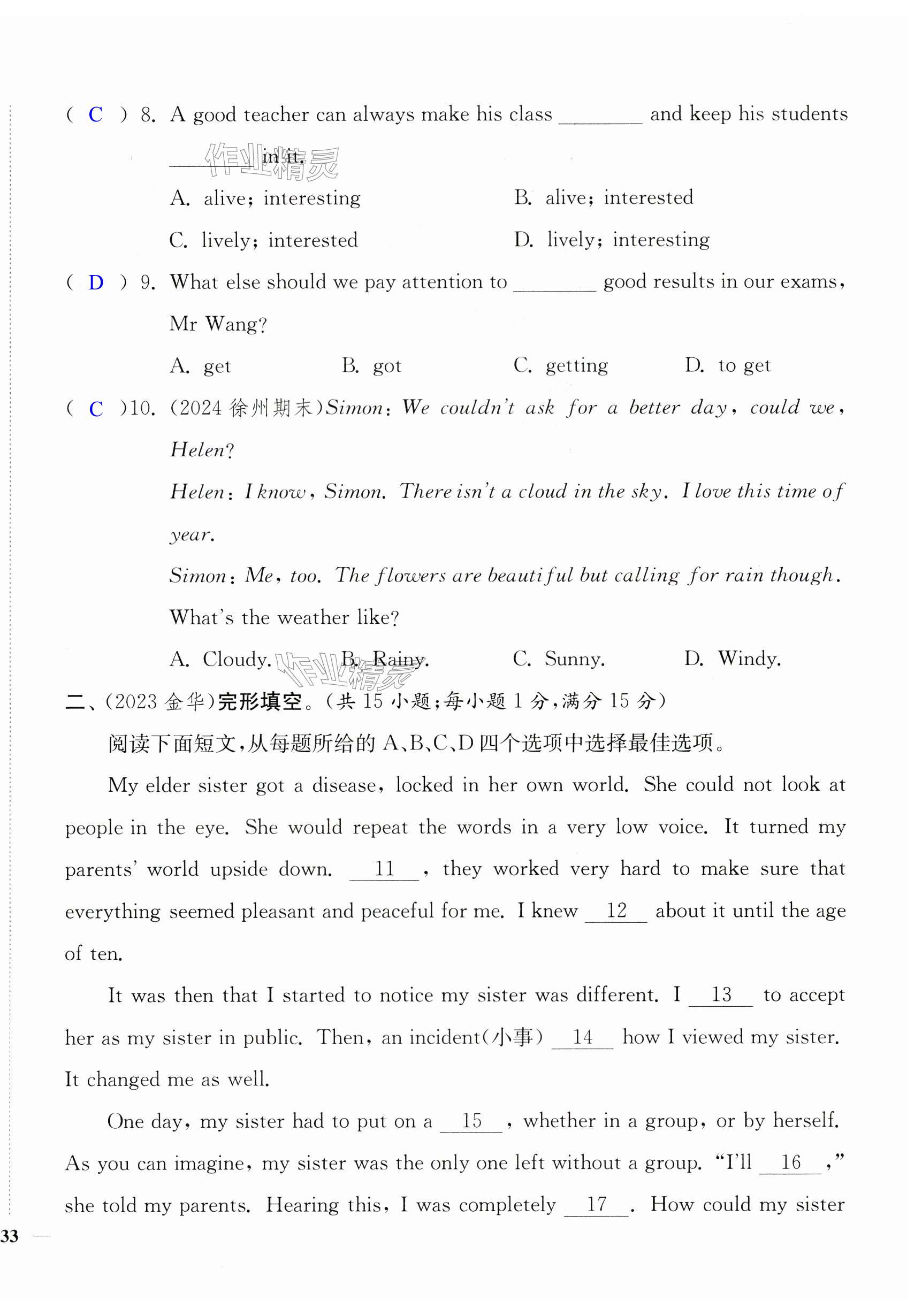 注:目前有些书本章节名称可能整理的还不是很完善,但都是按照顺序排列的,请同学们按照顺序仔细查找。练习册 2024年一本好卷九年级英语全一册译林版 答案主要是用来给同学们做完题方便对答案用的,请勿直接抄袭。