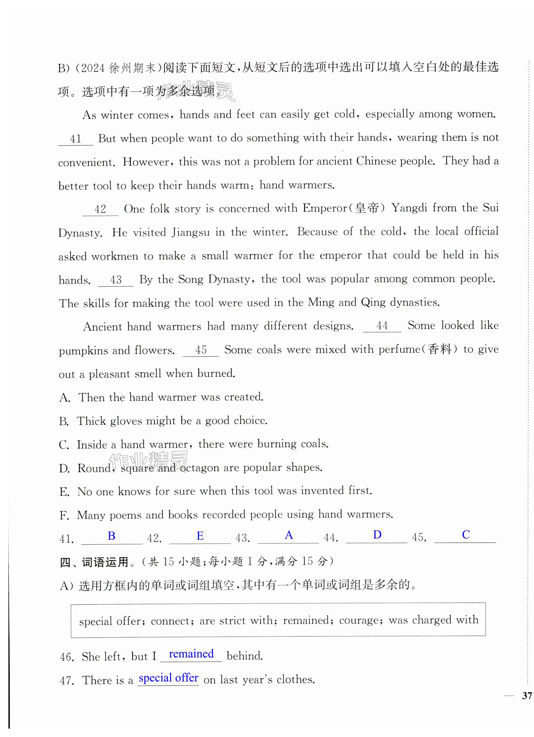 注:目前有些书本章节名称可能整理的还不是很完善,但都是按照顺序排列的,请同学们按照顺序仔细查找。练习册 2024年一本好卷九年级英语全一册译林版 答案主要是用来给同学们做完题方便对答案用的,请勿直接抄袭。