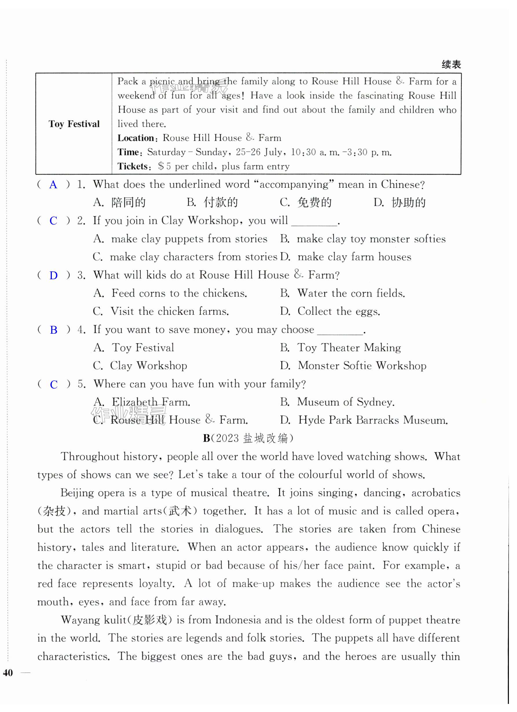 注:目前有些书本章节名称可能整理的还不是很完善,但都是按照顺序排列的,请同学们按照顺序仔细查找。练习册 2024年一本好卷九年级英语全一册译林版 答案主要是用来给同学们做完题方便对答案用的,请勿直接抄袭。
