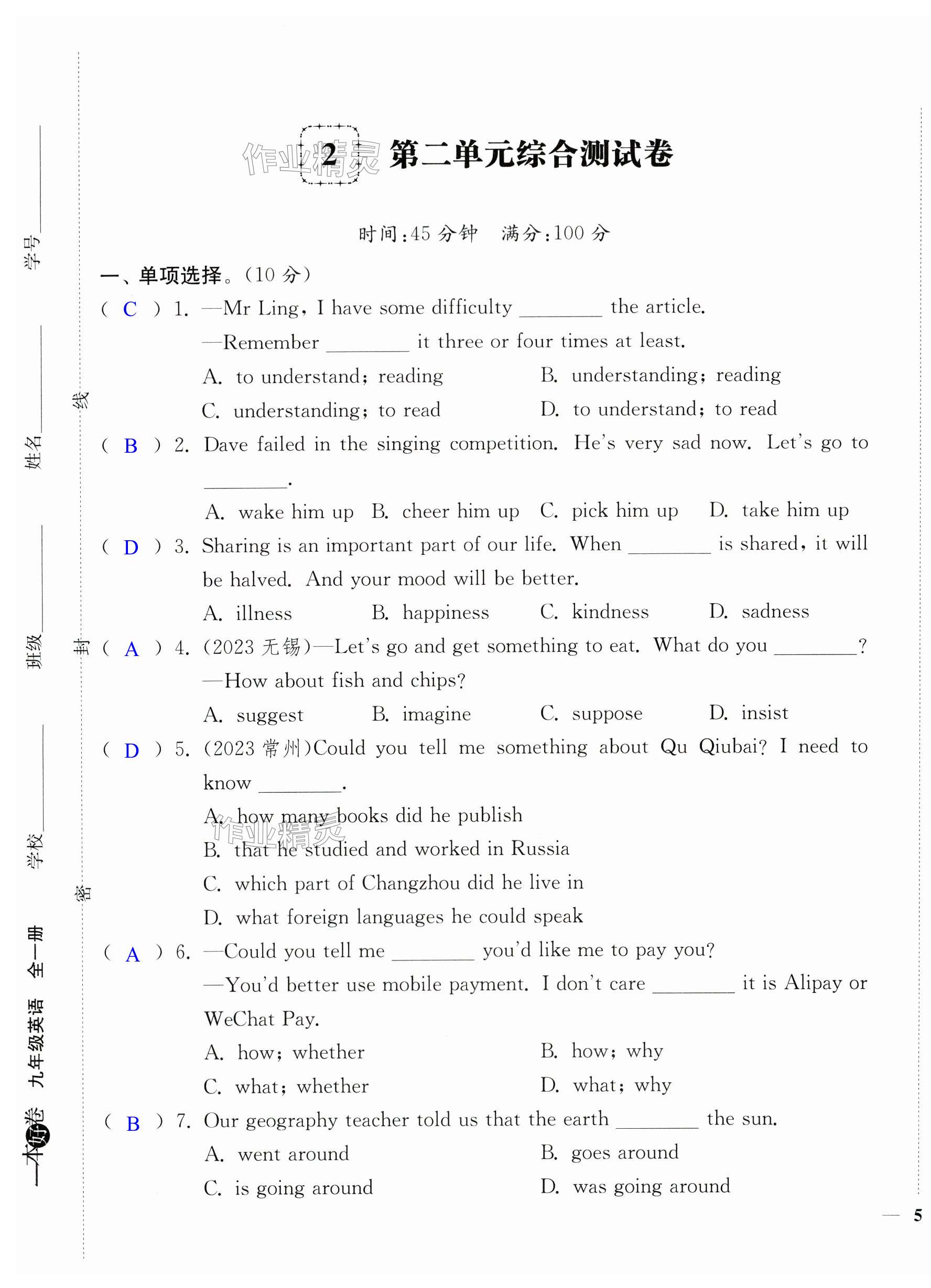 注:目前有些书本章节名称可能整理的还不是很完善,但都是按照顺序排列的,请同学们按照顺序仔细查找。练习册 2024年一本好卷九年级英语全一册译林版 答案主要是用来给同学们做完题方便对答案用的,请勿直接抄袭。