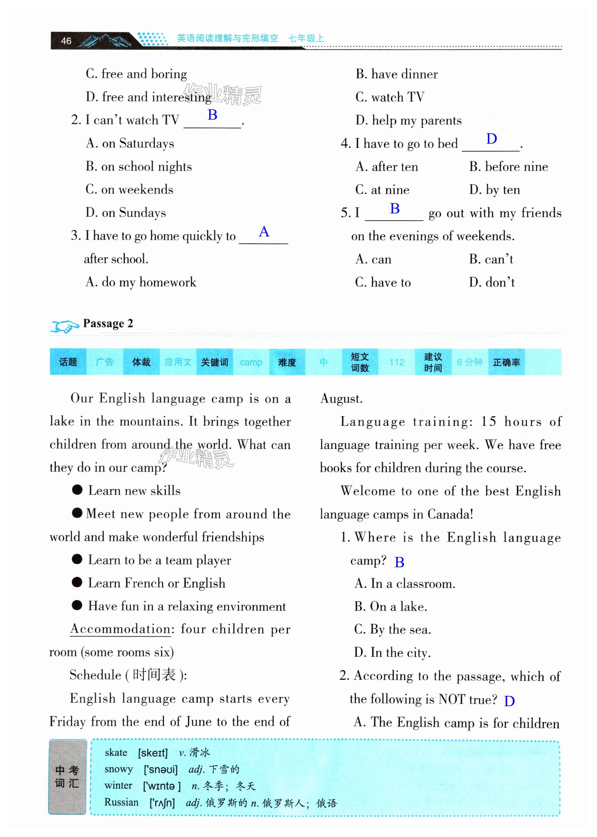注:目前有些书本章节名称可能整理的还不是很完善,但都是按照顺序排列的,请同学们按照顺序仔细查找。练习册 2024年初中英语阅读理解与完形填空江苏人民出版社七年级上册 答案主要是用来给同学们做完题方便对答案用的,请勿直接抄袭。