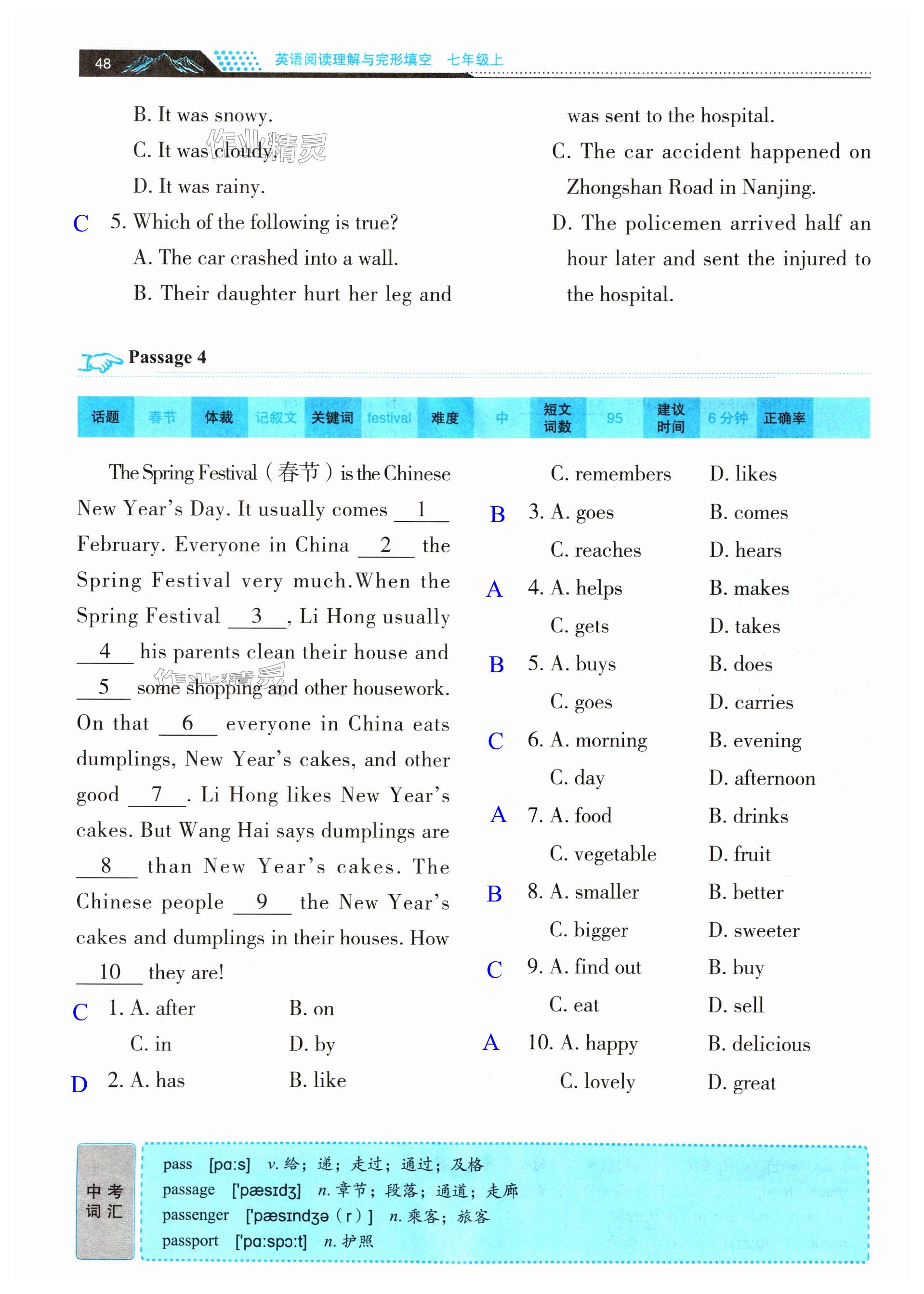 注:目前有些书本章节名称可能整理的还不是很完善,但都是按照顺序排列的,请同学们按照顺序仔细查找。练习册 2024年初中英语阅读理解与完形填空江苏人民出版社七年级上册 答案主要是用来给同学们做完题方便对答案用的,请勿直接抄袭。