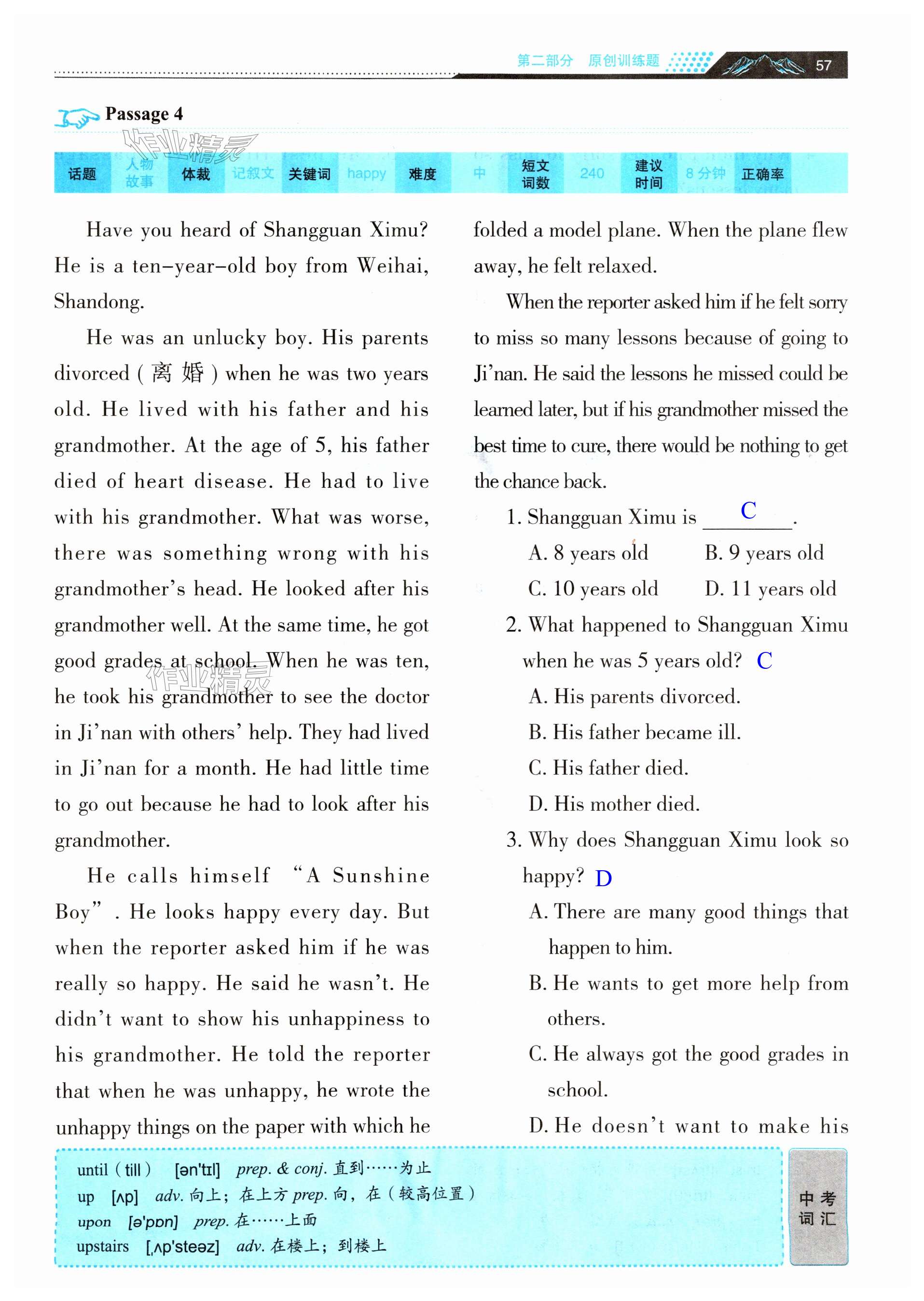 注:目前有些书本章节名称可能整理的还不是很完善,但都是按照顺序排列的,请同学们按照顺序仔细查找。练习册 2024年初中英语阅读理解与完形填空江苏人民出版社七年级上册 答案主要是用来给同学们做完题方便对答案用的,请勿直接抄袭。