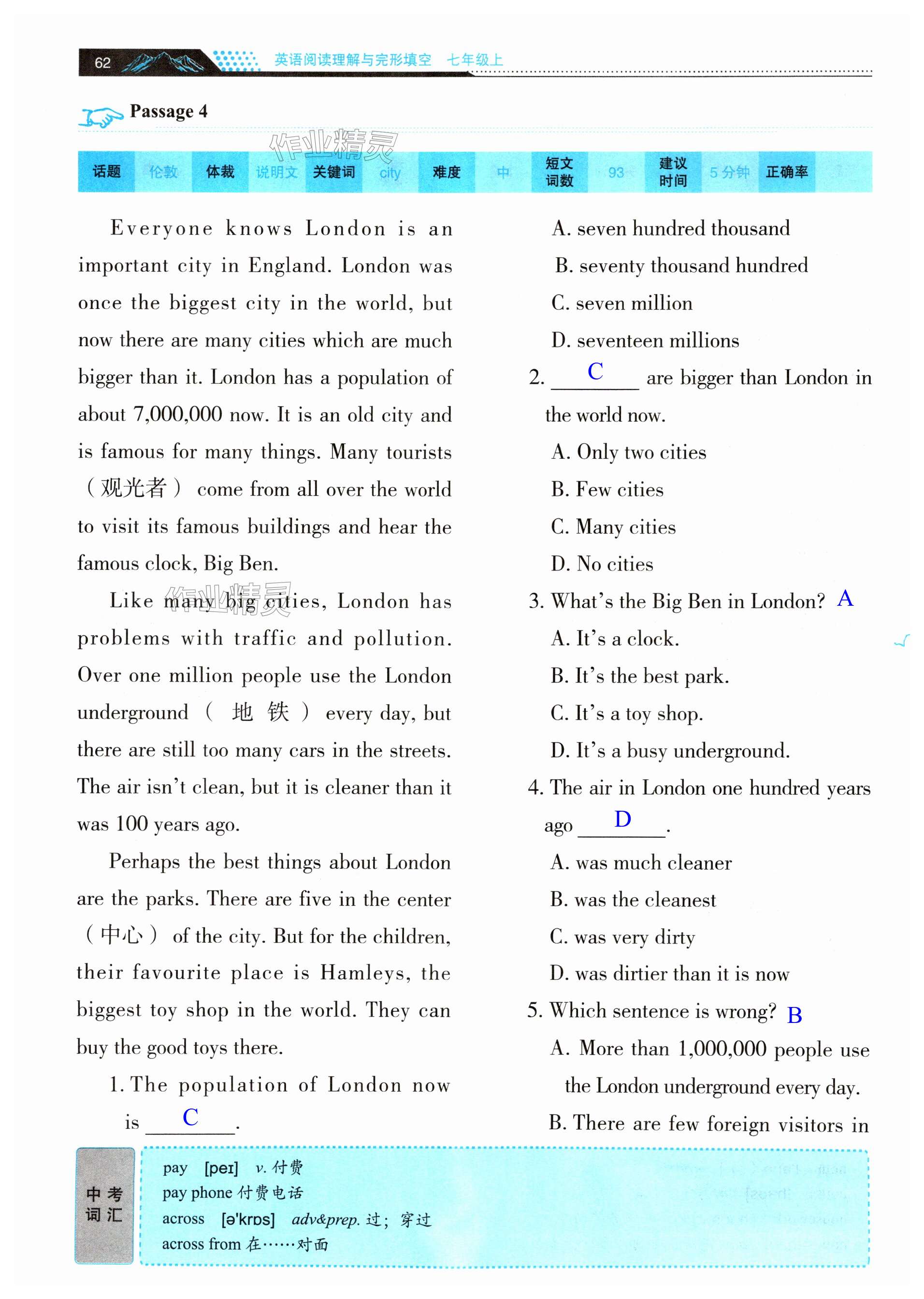 注:目前有些书本章节名称可能整理的还不是很完善,但都是按照顺序排列的,请同学们按照顺序仔细查找。练习册 2024年初中英语阅读理解与完形填空江苏人民出版社七年级上册 答案主要是用来给同学们做完题方便对答案用的,请勿直接抄袭。