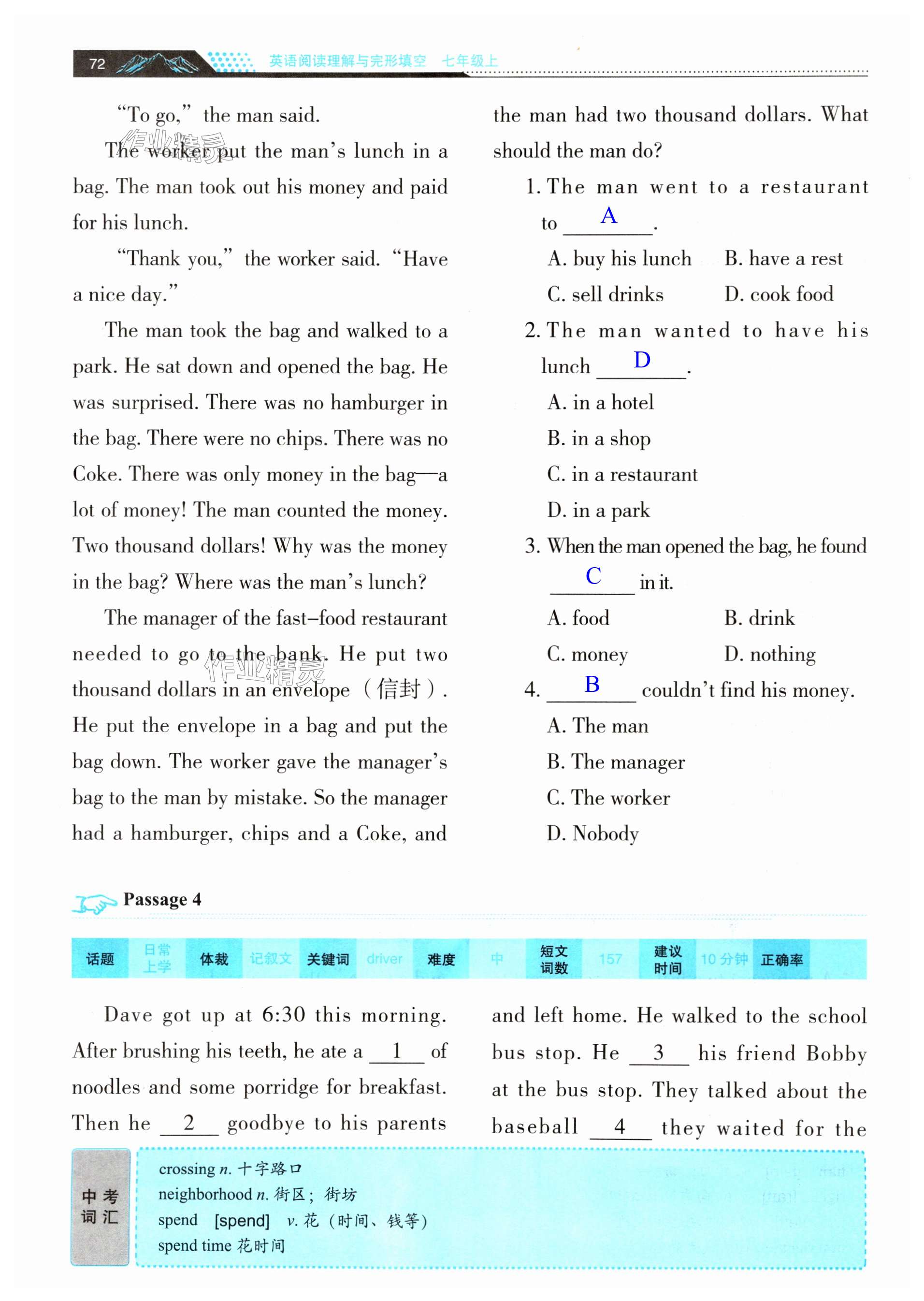 注:目前有些书本章节名称可能整理的还不是很完善,但都是按照顺序排列的,请同学们按照顺序仔细查找。练习册 2024年初中英语阅读理解与完形填空江苏人民出版社七年级上册 答案主要是用来给同学们做完题方便对答案用的,请勿直接抄袭。