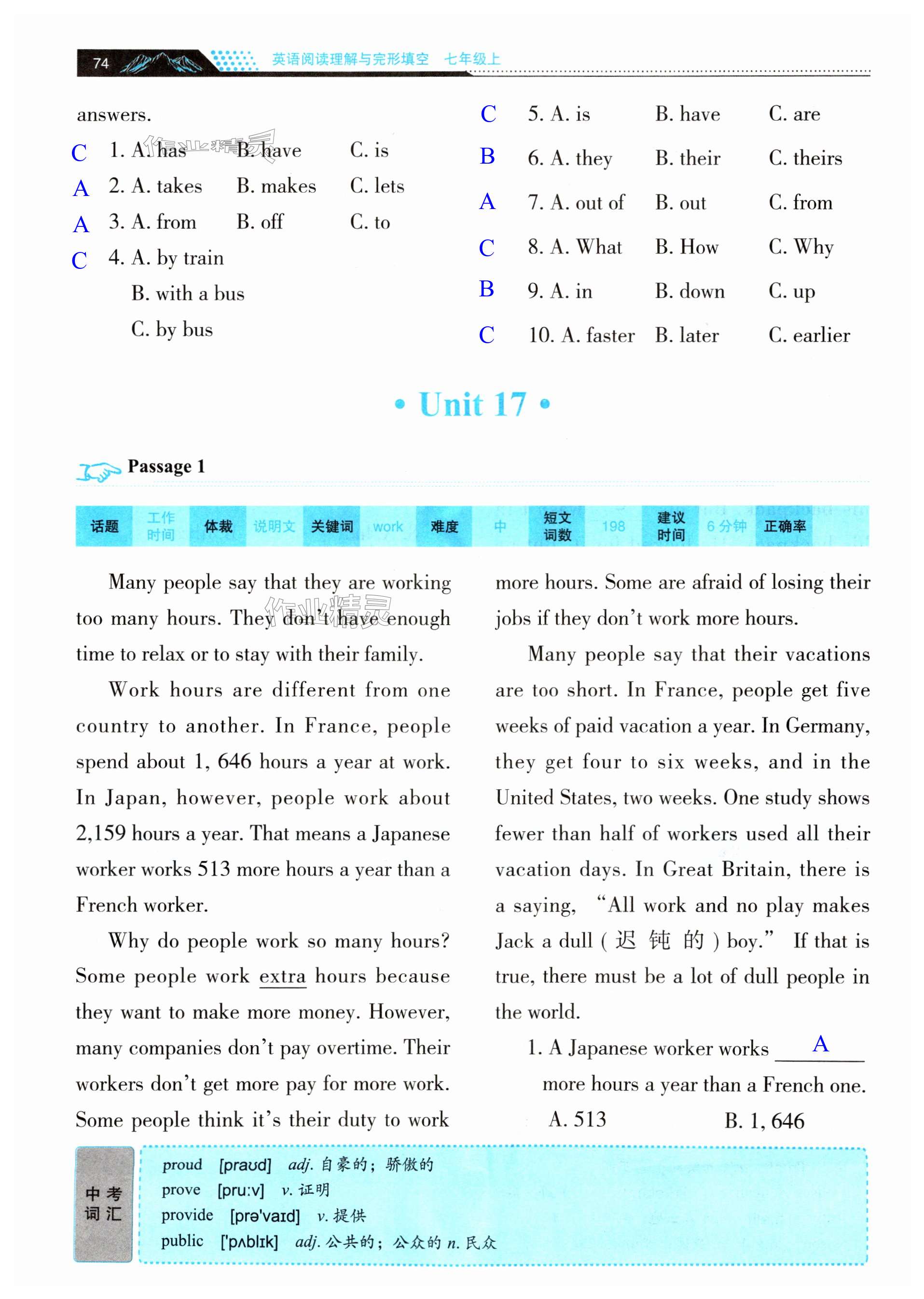 注:目前有些书本章节名称可能整理的还不是很完善,但都是按照顺序排列的,请同学们按照顺序仔细查找。练习册 2024年初中英语阅读理解与完形填空江苏人民出版社七年级上册 答案主要是用来给同学们做完题方便对答案用的,请勿直接抄袭。