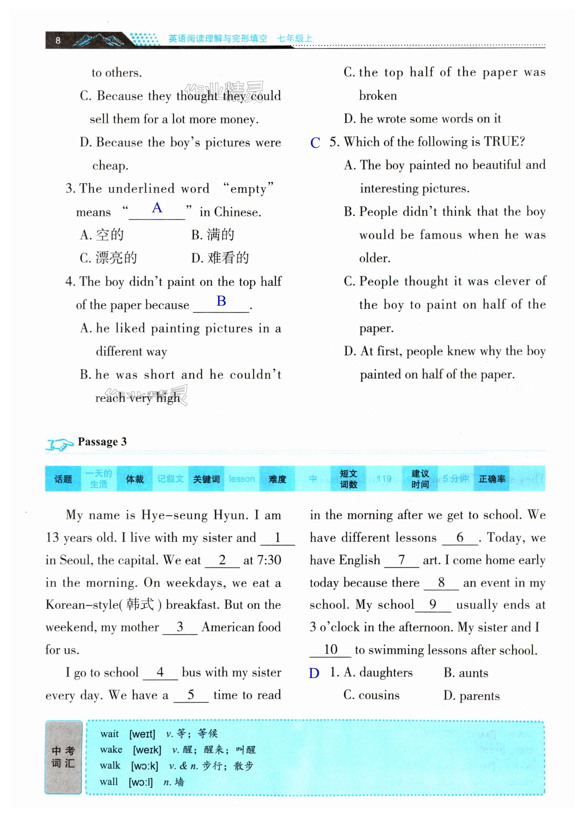 注:目前有些书本章节名称可能整理的还不是很完善,但都是按照顺序排列的,请同学们按照顺序仔细查找。练习册 2024年初中英语阅读理解与完形填空江苏人民出版社七年级上册 答案主要是用来给同学们做完题方便对答案用的,请勿直接抄袭。