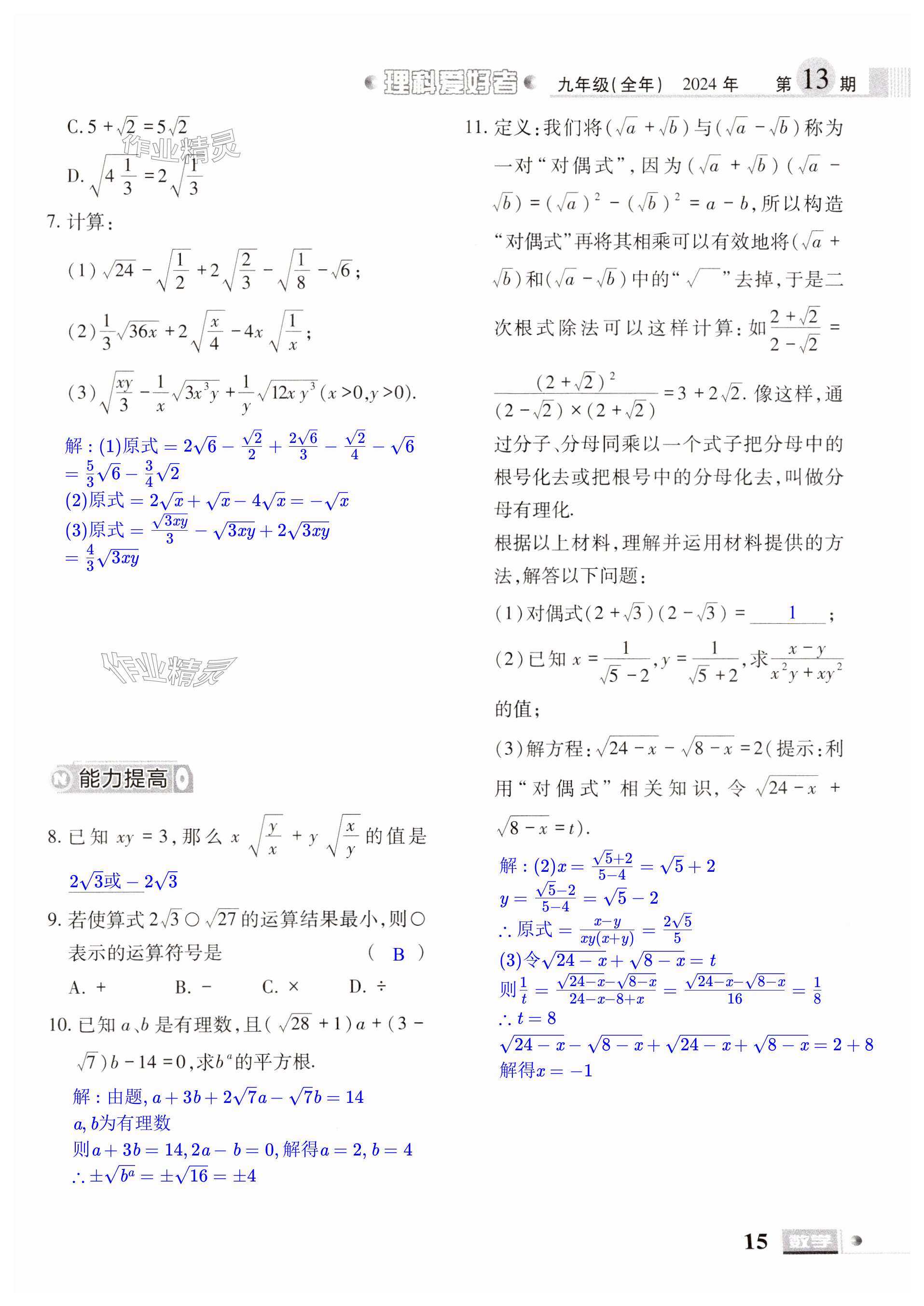 注:目前有些书本章节名称可能整理的还不是很完善,但都是按照顺序排列的,请同学们按照顺序仔细查找。练习册 2024年理科爱好者九年级数学全一册华师大版第13期 答案主要是用来给同学们做完题方便对答案用的,请勿直接抄袭。