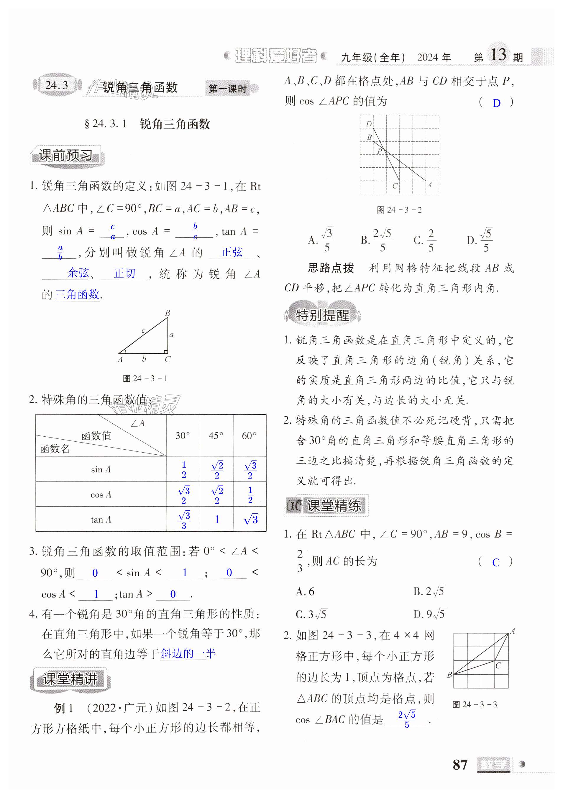 2024年理科爱好者九年级数学全一册华师大版第13期