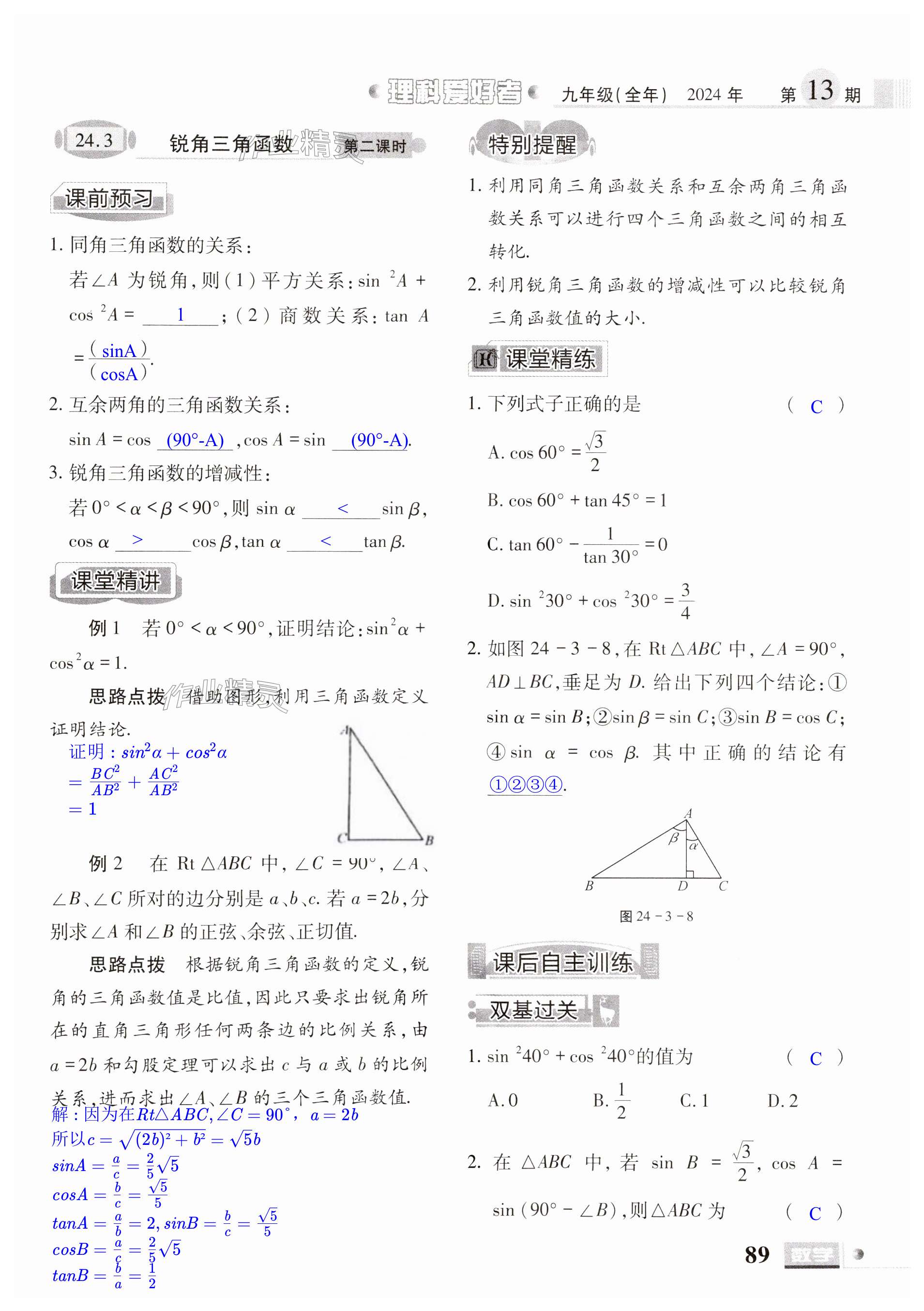 2024年理科爱好者九年级数学全一册华师大版第13期