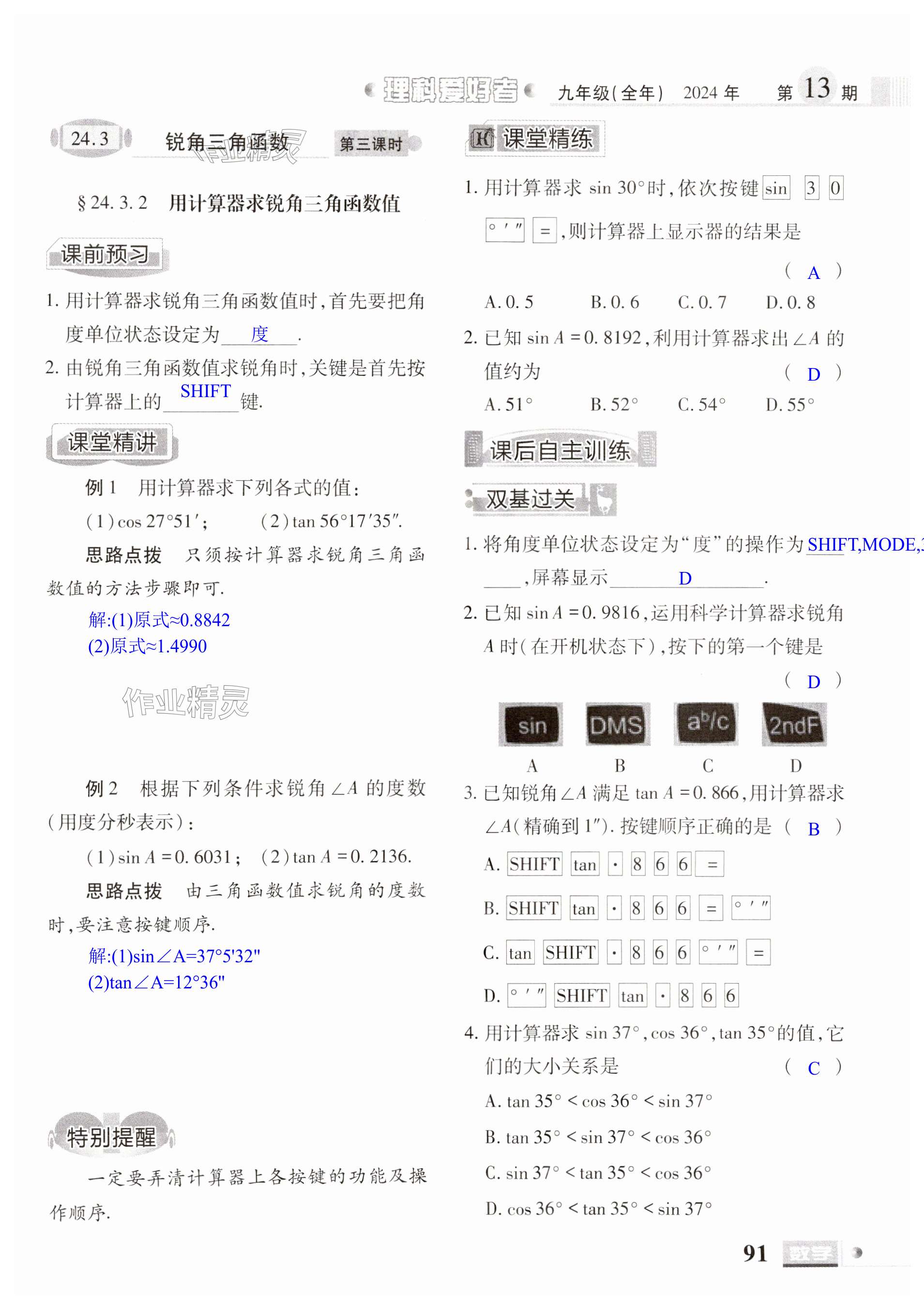 2024年理科爱好者九年级数学全一册华师大版第13期
