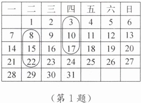 1. 观察如图所示的月历,回答下列问题: