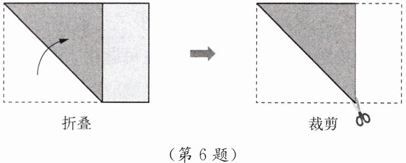 6. 如图是从一张长方形纸片中剪下最大正方形纸片的方法.仿照这个方法,现从一张长方形纸片中剪下最大的正方形纸片,在剩下的长方形纸片中继续剪下最大的正方形纸片……连续剪下3个正方形纸片后,剩下的长方形纸片恰好是正方形纸片.这个长方形纸片宽与长的比可能是多少?尝试画出一种该长方形纸片裁剪线的示意图.还有其他可能吗?
