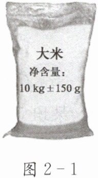 (3)如图2-1,某大米包装袋上标注"净含量:10kg±150g",这里的"10kg±150g"表示什么?