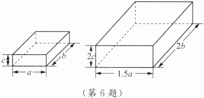 6. 放置在水平地面上的两个无盖(朝上的面)长方体纸盒的大小、形状如图所示.小长方体的长、宽、高分别为a cm,b cm,c cm;大长方体的长、宽、高分别为1.5a cm,2b cm,2c cm.