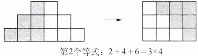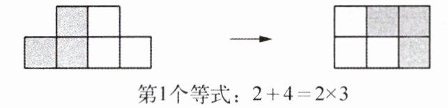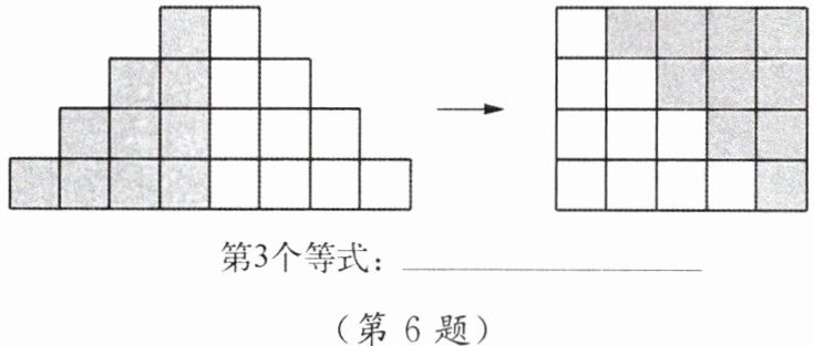 6. 如图,每个小正方形的面积均为1.将左列图中的黑色小正方形移动,拼成右列图中的长方形,根据两种图形转换的方法计算小正方形的个数,得出相应等式.