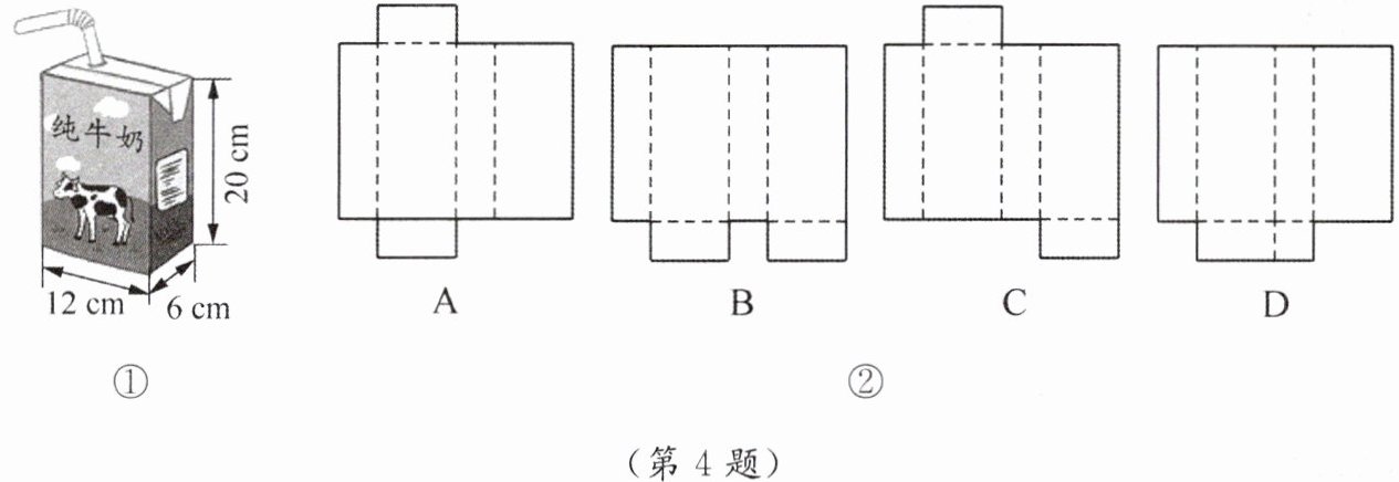 4. 有一种牛奶软包装盒如图①所示,为了生产这种包装盒,需要先画出平面展开图纸样.