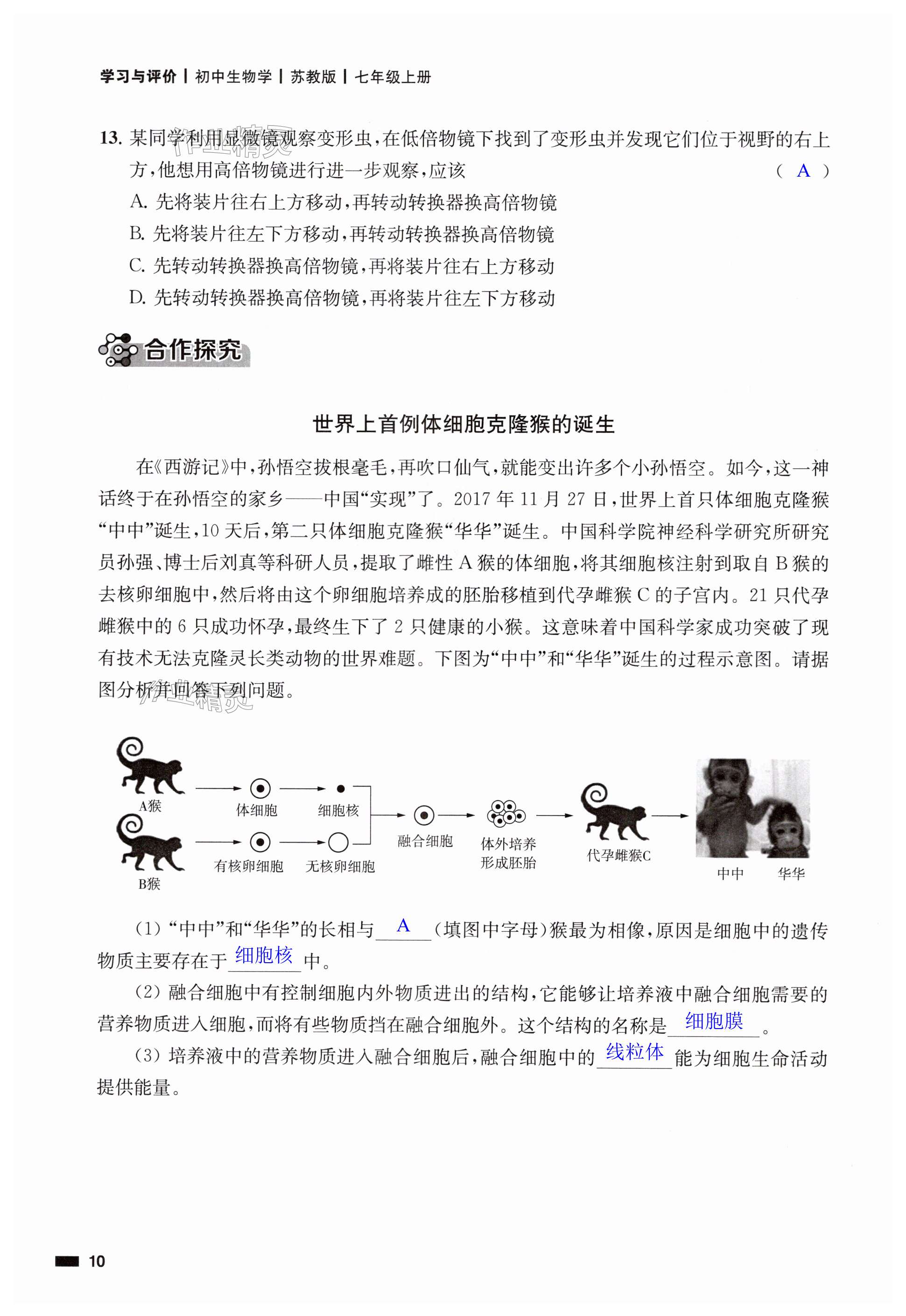 注:目前有些书本章节名称可能整理的还不是很完善,但都是按照顺序排列的,请同学们按照顺序仔细查找。练习册 2024年学习与评价江苏凤凰教育出版社七年级生物上册苏教版江苏专版 答案主要是用来给同学们做完题方便对答案用的,请勿直接抄袭。