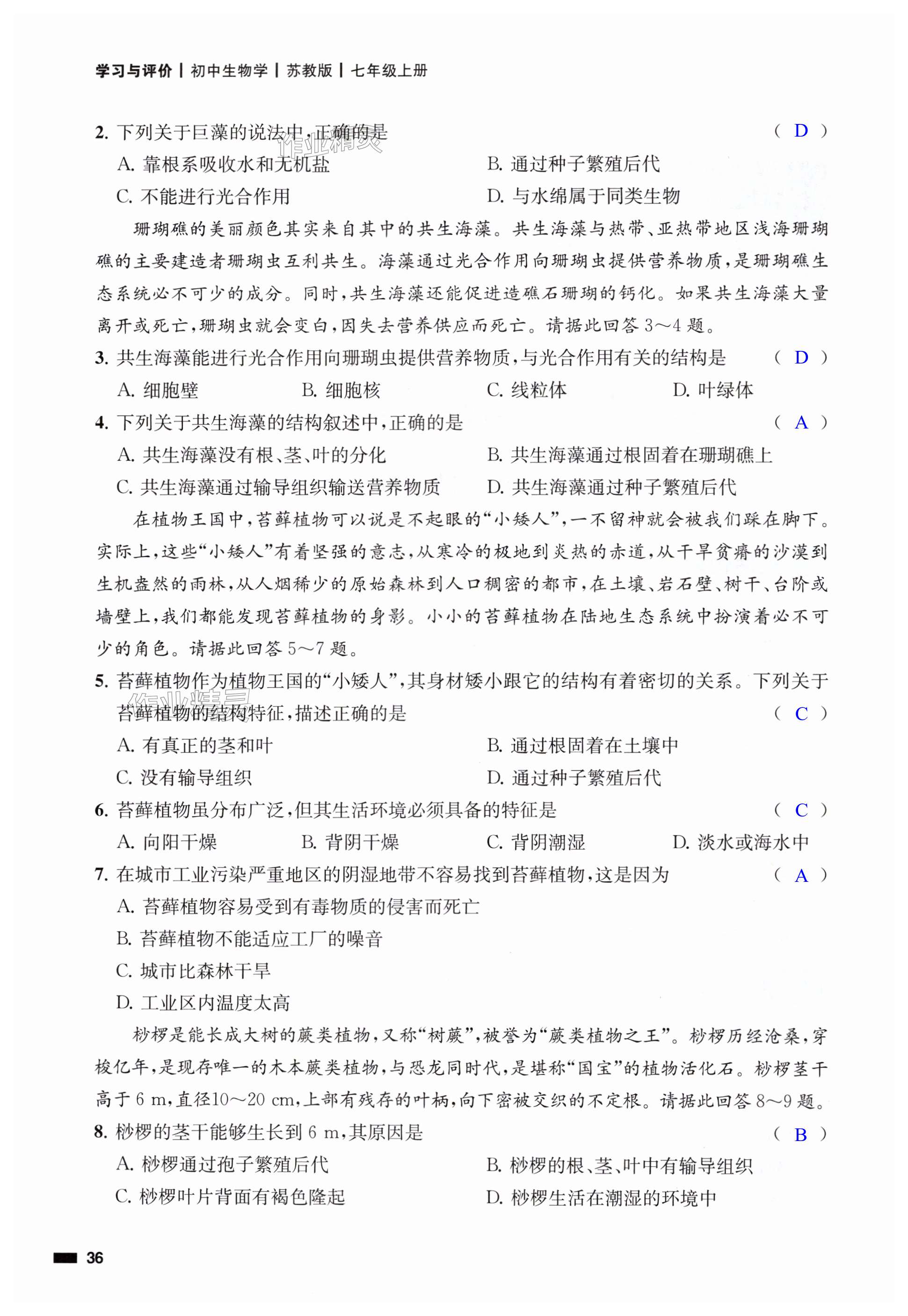 注:目前有些书本章节名称可能整理的还不是很完善,但都是按照顺序排列的,请同学们按照顺序仔细查找。练习册 2024年学习与评价江苏凤凰教育出版社七年级生物上册苏教版江苏专版 答案主要是用来给同学们做完题方便对答案用的,请勿直接抄袭。