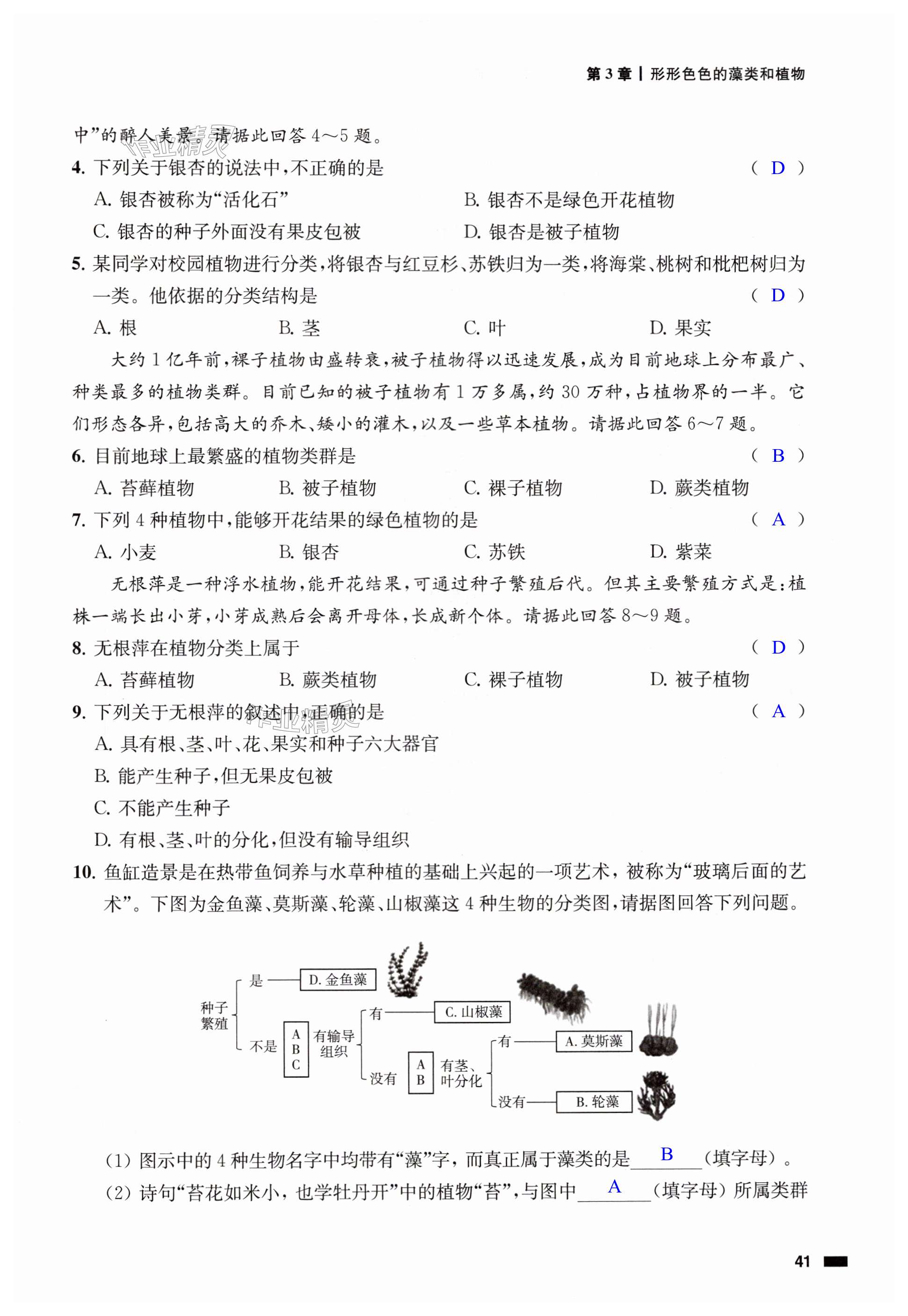 注:目前有些书本章节名称可能整理的还不是很完善,但都是按照顺序排列的,请同学们按照顺序仔细查找。练习册 2024年学习与评价江苏凤凰教育出版社七年级生物上册苏教版江苏专版 答案主要是用来给同学们做完题方便对答案用的,请勿直接抄袭。