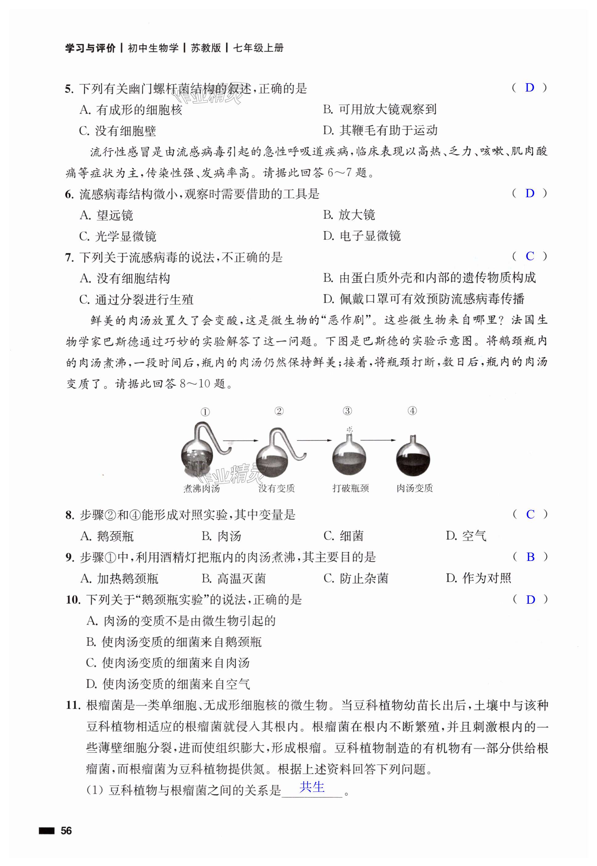 注:目前有些书本章节名称可能整理的还不是很完善,但都是按照顺序排列的,请同学们按照顺序仔细查找。练习册 2024年学习与评价江苏凤凰教育出版社七年级生物上册苏教版江苏专版 答案主要是用来给同学们做完题方便对答案用的,请勿直接抄袭。