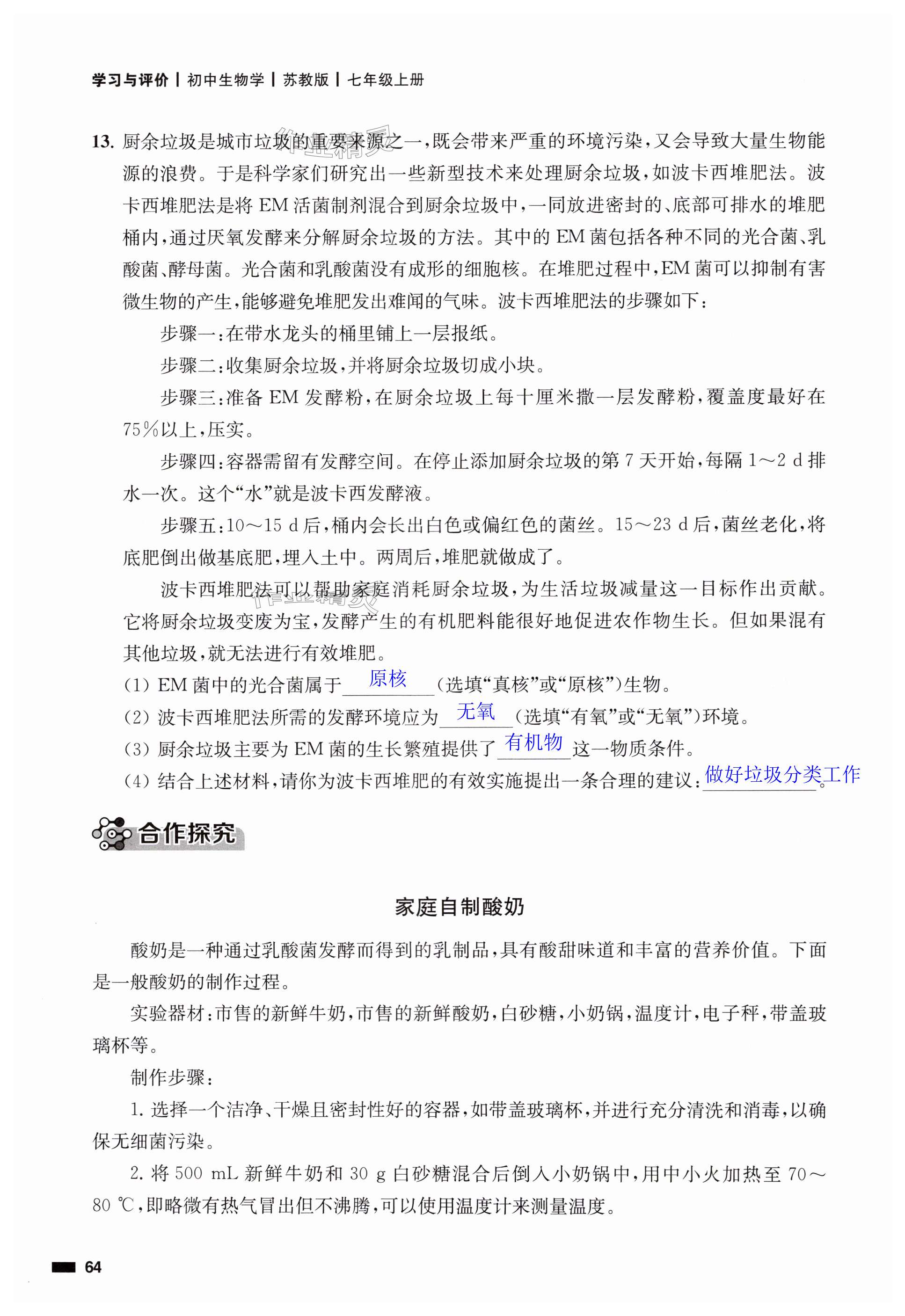 注:目前有些书本章节名称可能整理的还不是很完善,但都是按照顺序排列的,请同学们按照顺序仔细查找。练习册 2024年学习与评价江苏凤凰教育出版社七年级生物上册苏教版江苏专版 答案主要是用来给同学们做完题方便对答案用的,请勿直接抄袭。