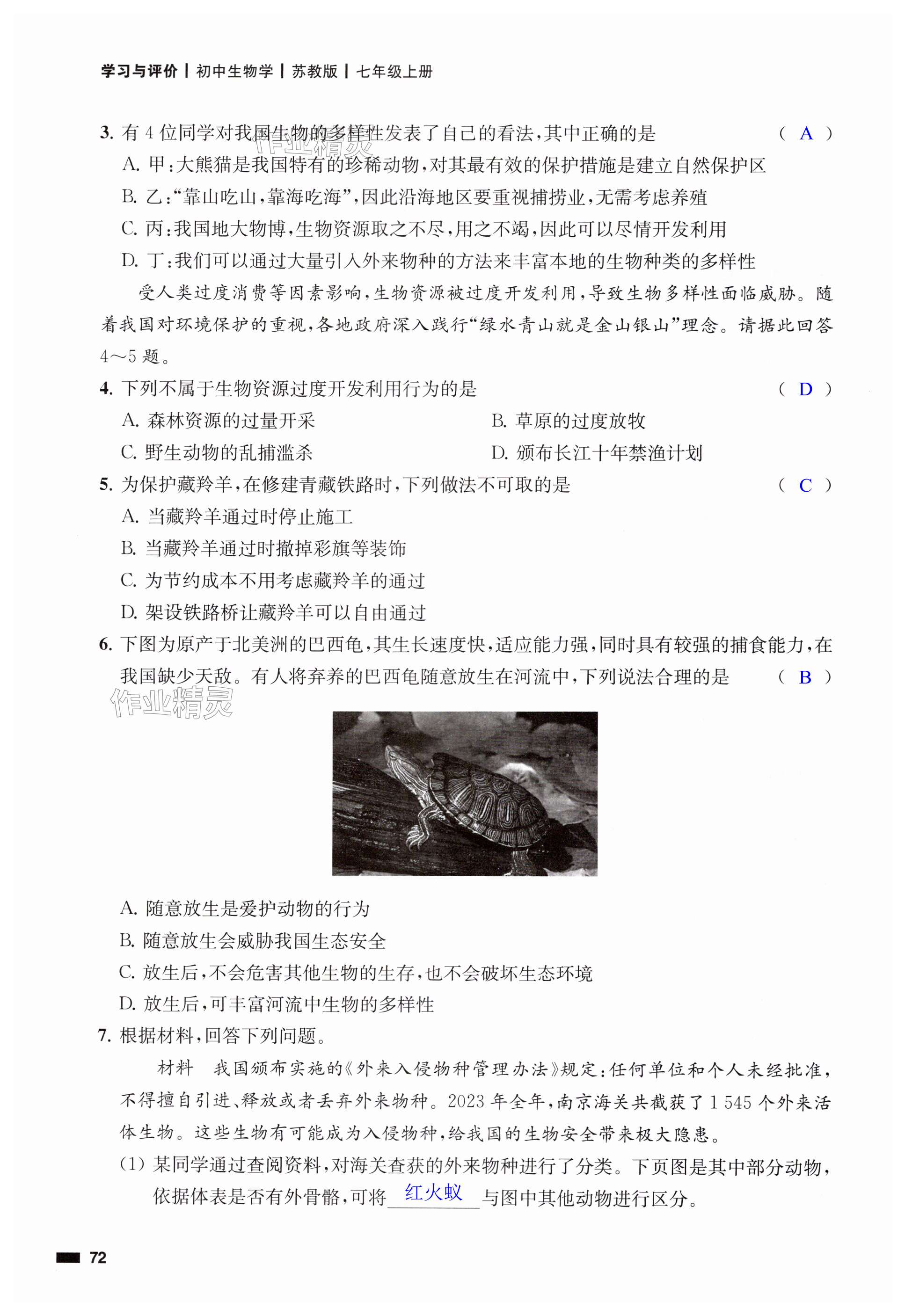 注:目前有些书本章节名称可能整理的还不是很完善,但都是按照顺序排列的,请同学们按照顺序仔细查找。练习册 2024年学习与评价江苏凤凰教育出版社七年级生物上册苏教版江苏专版 答案主要是用来给同学们做完题方便对答案用的,请勿直接抄袭。