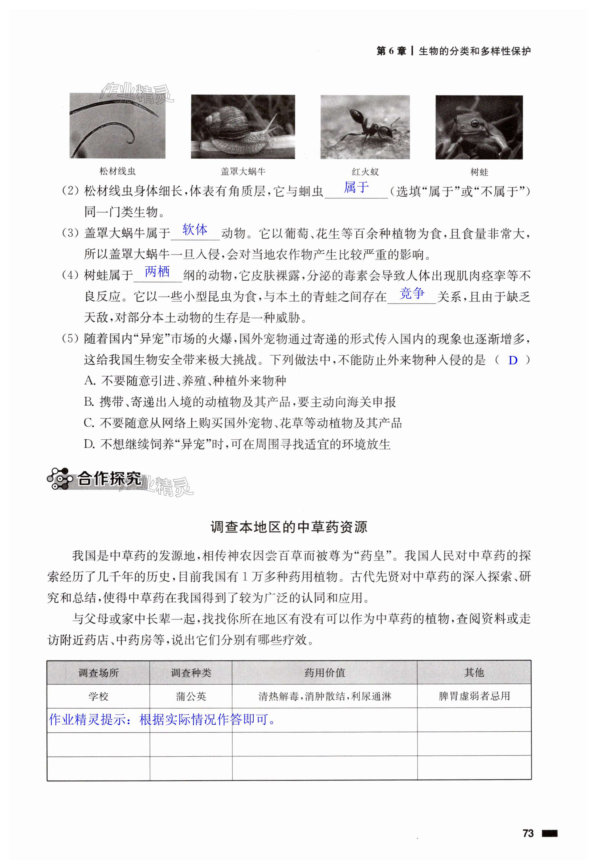 注:目前有些书本章节名称可能整理的还不是很完善,但都是按照顺序排列的,请同学们按照顺序仔细查找。练习册 2024年学习与评价江苏凤凰教育出版社七年级生物上册苏教版江苏专版 答案主要是用来给同学们做完题方便对答案用的,请勿直接抄袭。
