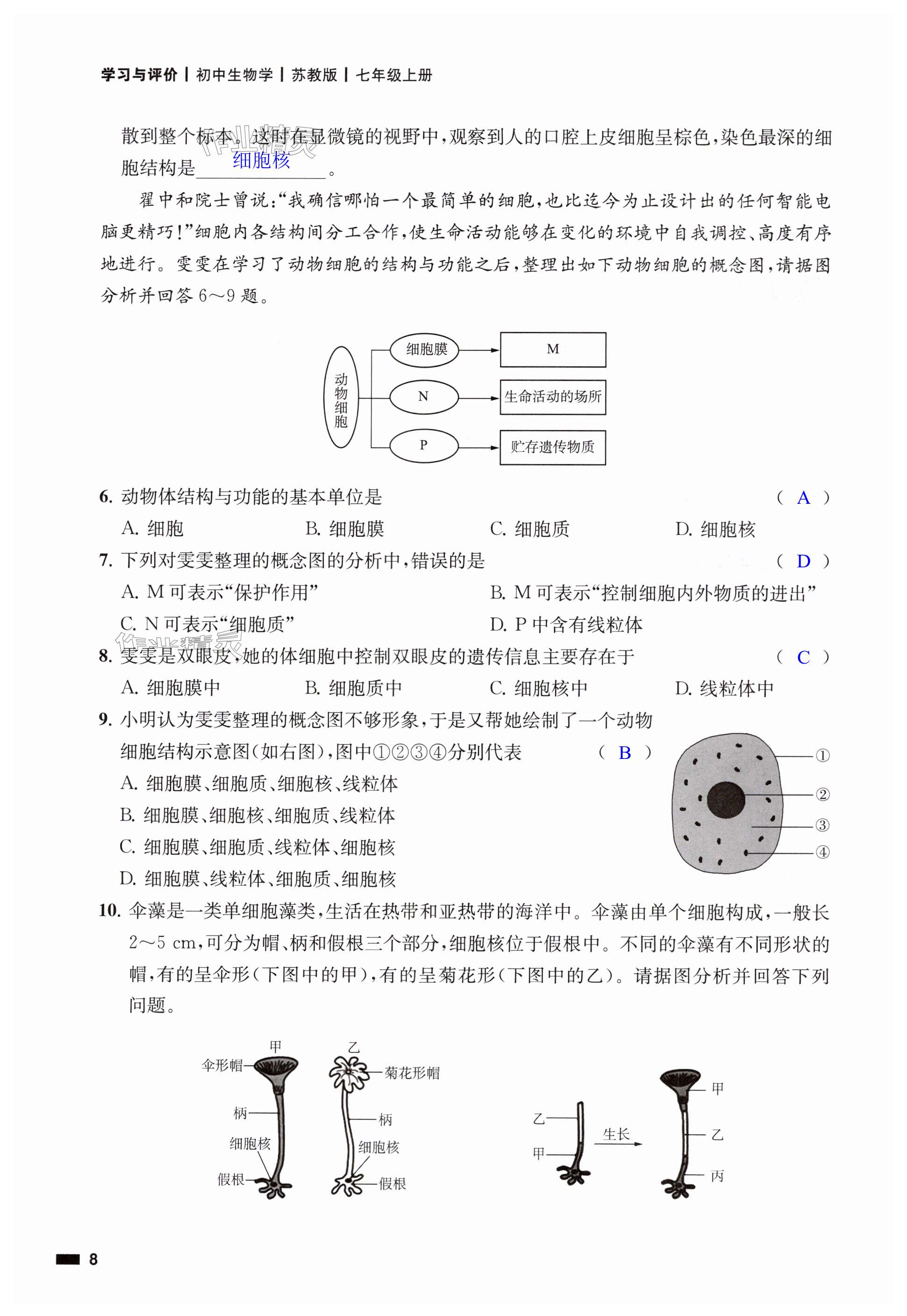注:目前有些书本章节名称可能整理的还不是很完善,但都是按照顺序排列的,请同学们按照顺序仔细查找。练习册 2024年学习与评价江苏凤凰教育出版社七年级生物上册苏教版江苏专版 答案主要是用来给同学们做完题方便对答案用的,请勿直接抄袭。