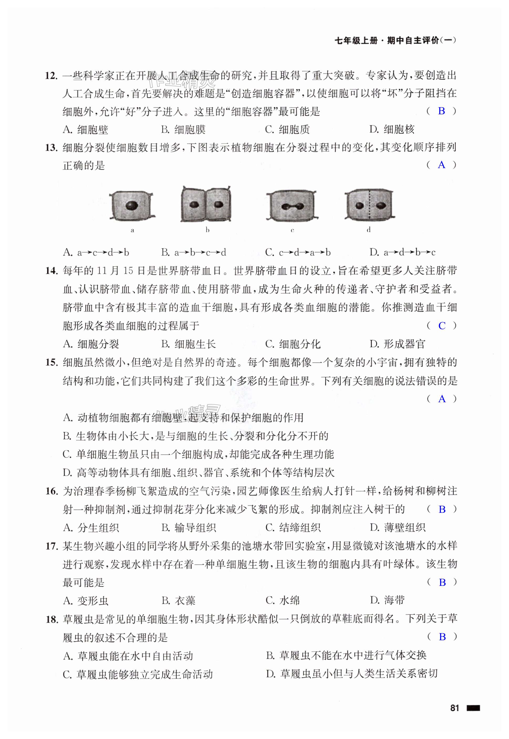 注:目前有些书本章节名称可能整理的还不是很完善,但都是按照顺序排列的,请同学们按照顺序仔细查找。练习册 2024年学习与评价江苏凤凰教育出版社七年级生物上册苏教版江苏专版 答案主要是用来给同学们做完题方便对答案用的,请勿直接抄袭。