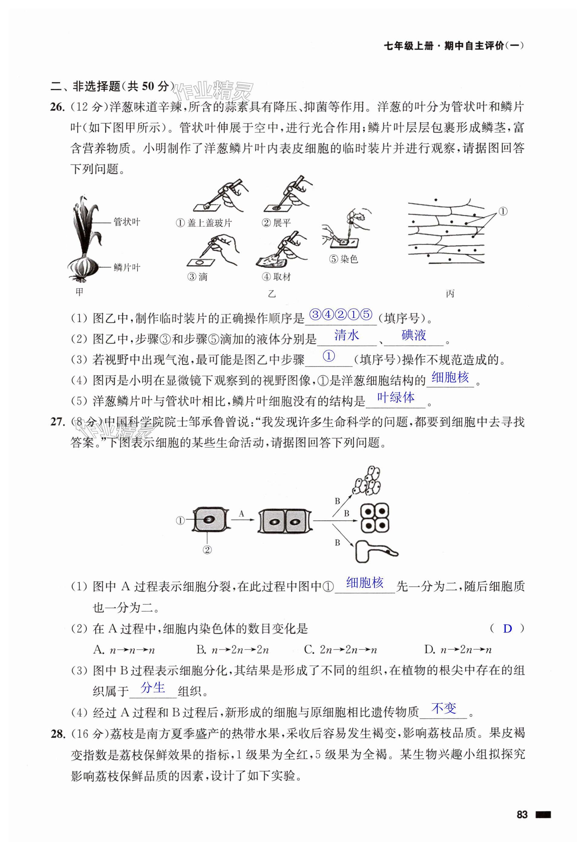 注:目前有些书本章节名称可能整理的还不是很完善,但都是按照顺序排列的,请同学们按照顺序仔细查找。练习册 2024年学习与评价江苏凤凰教育出版社七年级生物上册苏教版江苏专版 答案主要是用来给同学们做完题方便对答案用的,请勿直接抄袭。