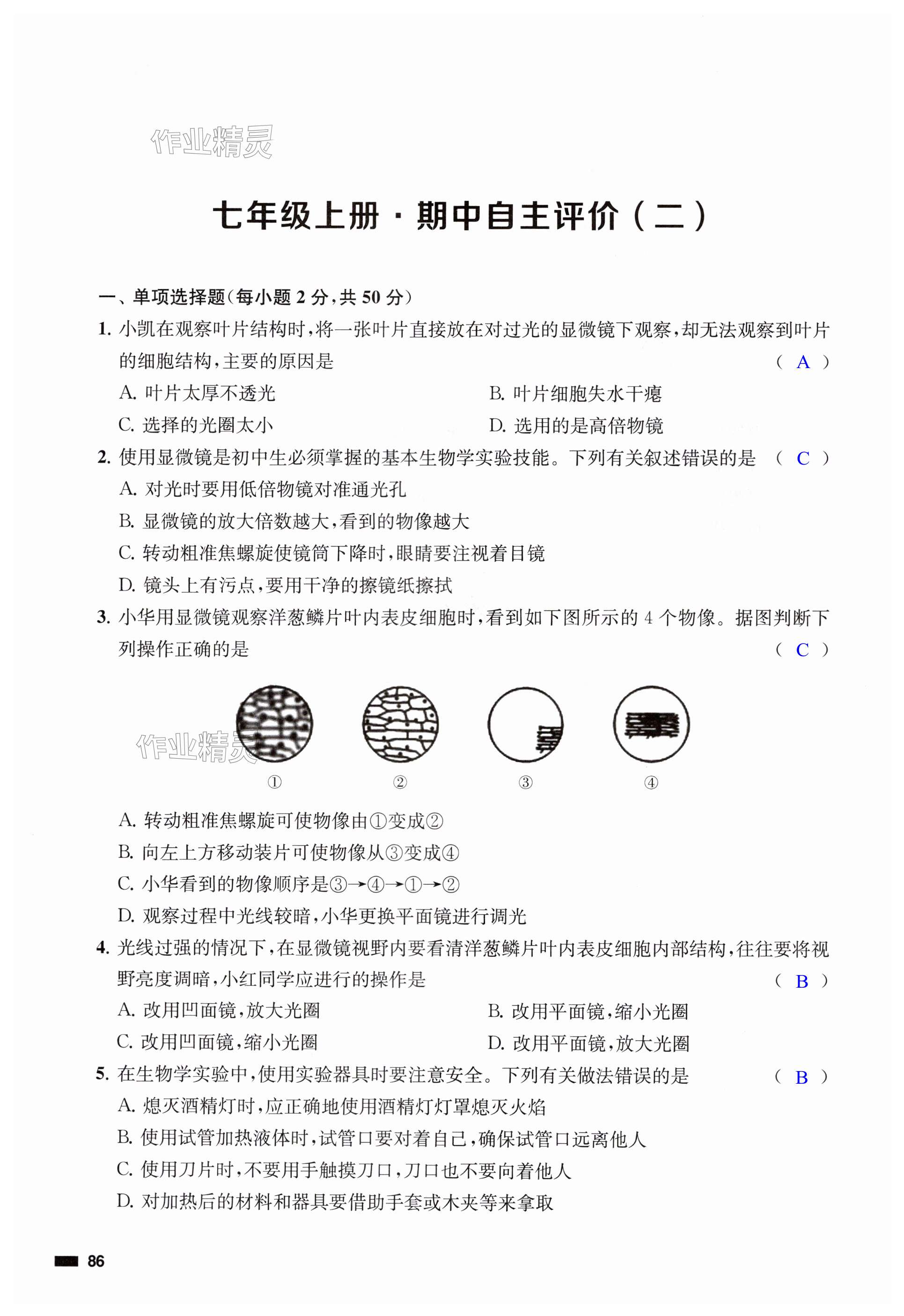 注:目前有些书本章节名称可能整理的还不是很完善,但都是按照顺序排列的,请同学们按照顺序仔细查找。练习册 2024年学习与评价江苏凤凰教育出版社七年级生物上册苏教版江苏专版 答案主要是用来给同学们做完题方便对答案用的,请勿直接抄袭。