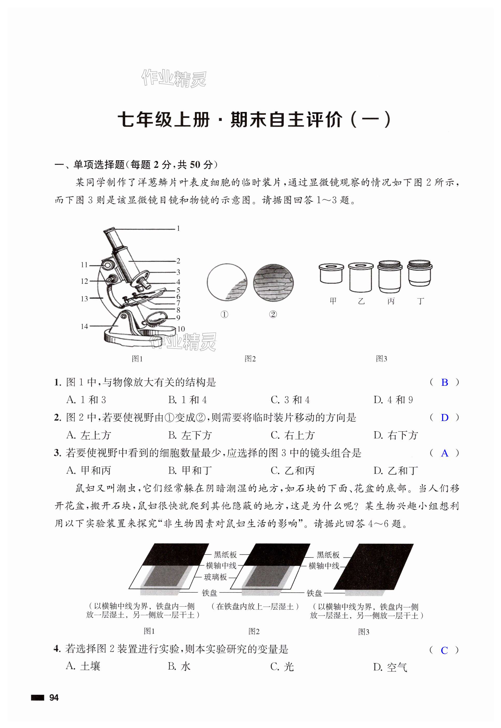 注:目前有些书本章节名称可能整理的还不是很完善,但都是按照顺序排列的,请同学们按照顺序仔细查找。练习册 2024年学习与评价江苏凤凰教育出版社七年级生物上册苏教版江苏专版 答案主要是用来给同学们做完题方便对答案用的,请勿直接抄袭。