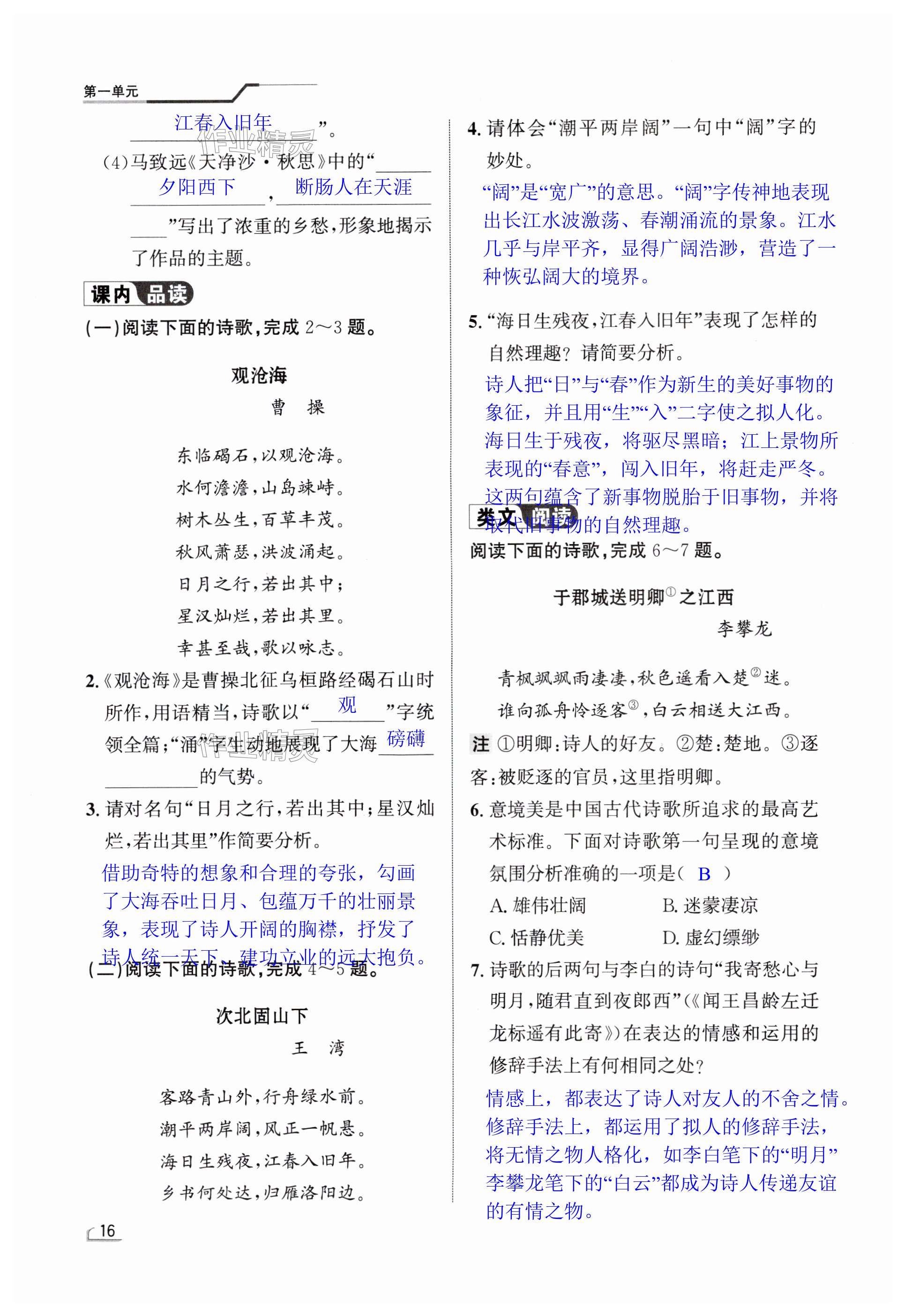 注:目前有些书本章节名称可能整理的还不是很完善,但都是按照顺序排列的,请同学们按照顺序仔细查找。练习册 2024年同步练习册人民教育出版社七年级语文上册人教版江苏专版 答案主要是用来给同学们做完题方便对答案用的,请勿直接抄袭。