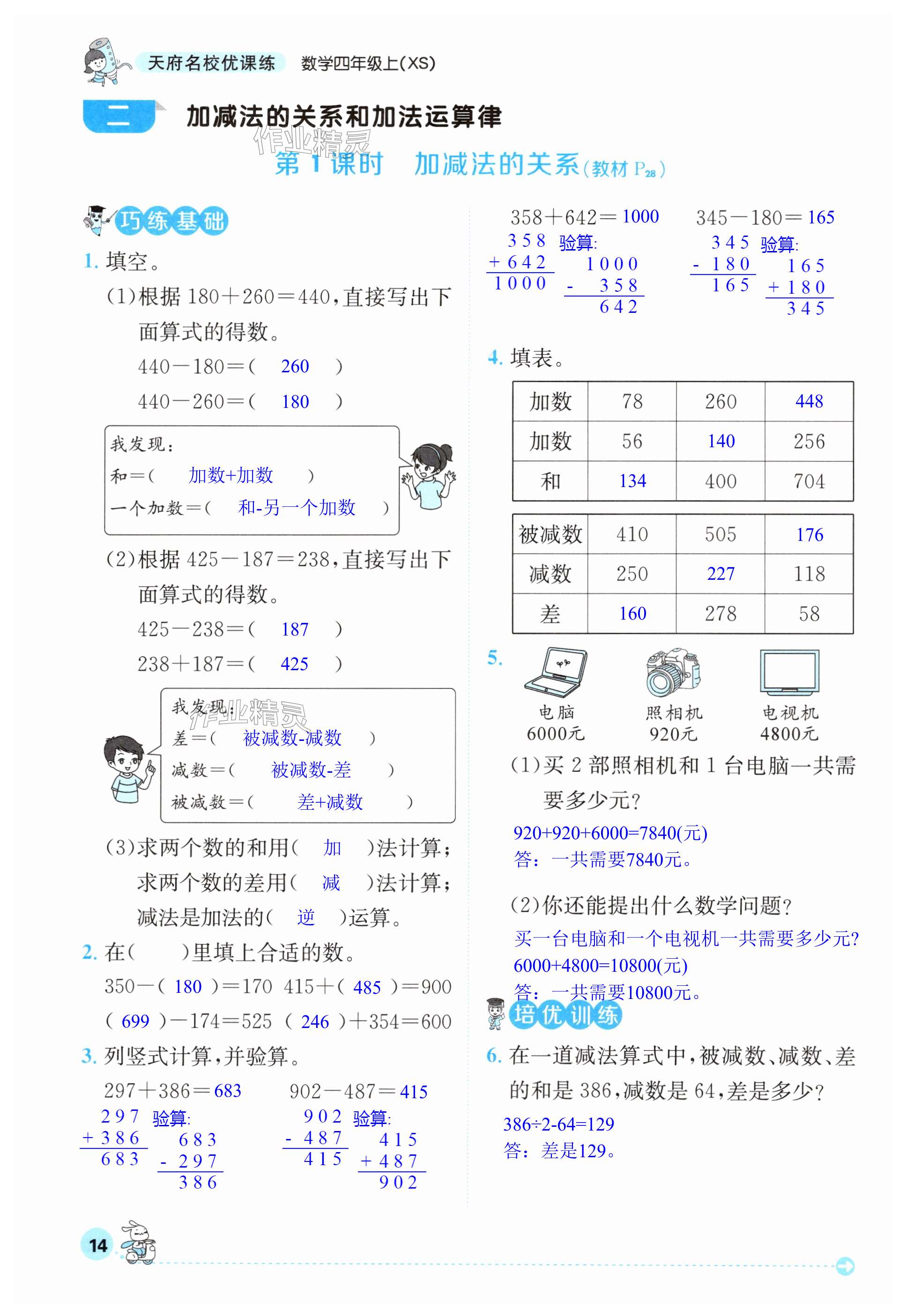 注:目前有些书本章节名称可能整理的还不是很完善,但都是按照顺序排列的,请同学们按照顺序仔细查找。练习册 2024年天府名校优课练四年级数学上册西师大版 答案主要是用来给同学们做完题方便对答案用的,请勿直接抄袭。
