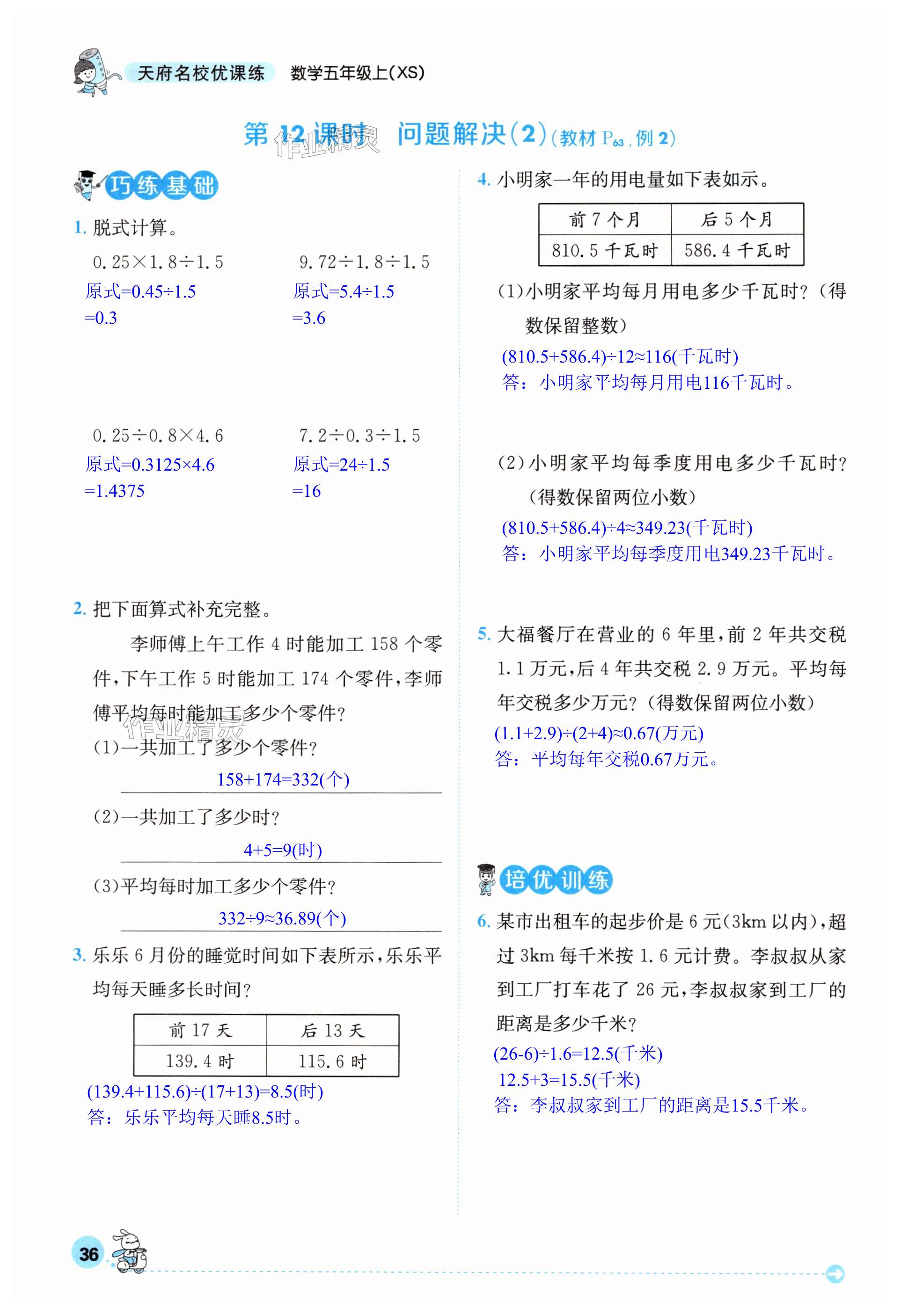 注:目前有些书本章节名称可能整理的还不是很完善,但都是按照顺序排列的,请同学们按照顺序仔细查找。练习册 2024年天府名校优课练五年级数学上册西师大版 答案主要是用来给同学们做完题方便对答案用的,请勿直接抄袭。