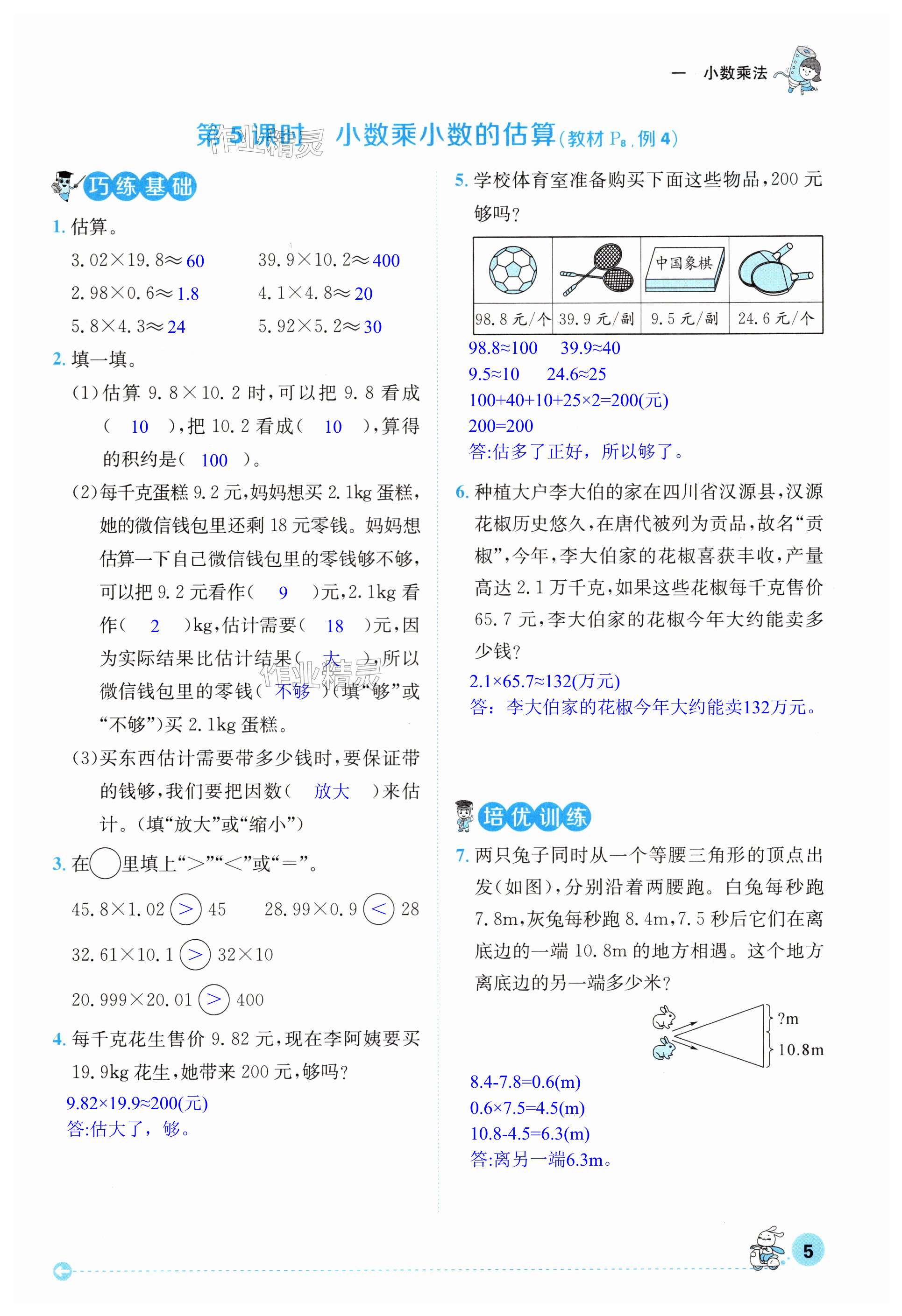 注:目前有些书本章节名称可能整理的还不是很完善,但都是按照顺序排列的,请同学们按照顺序仔细查找。练习册 2024年天府名校优课练五年级数学上册西师大版 答案主要是用来给同学们做完题方便对答案用的,请勿直接抄袭。