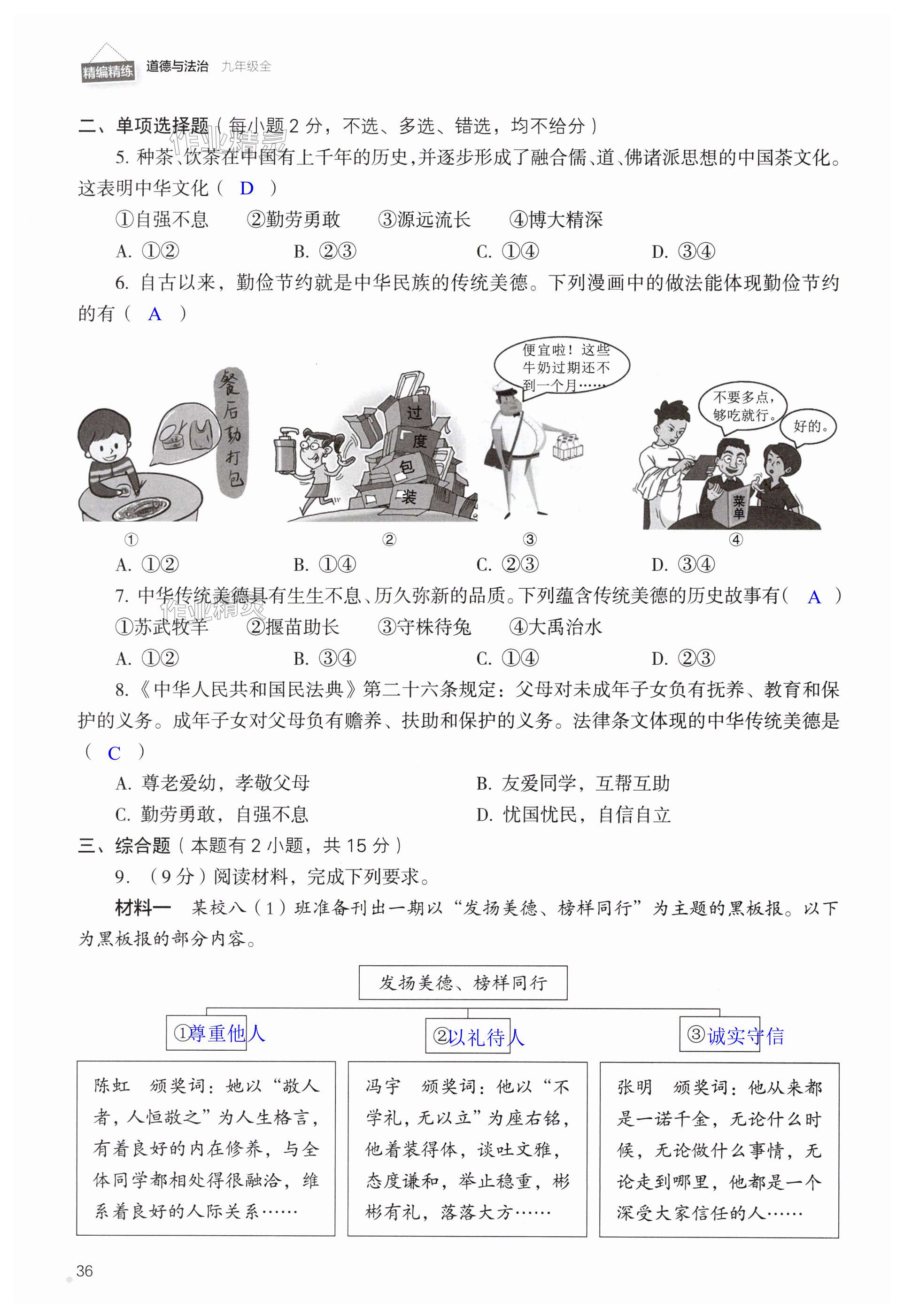 注:目前有些书本章节名称可能整理的还不是很完善,但都是按照顺序排列的,请同学们按照顺序仔细查找。练习册 2024年精编精练浙江教育出版社九年级道德与法治全一册人教版 答案主要是用来给同学们做完题方便对答案用的,请勿直接抄袭。